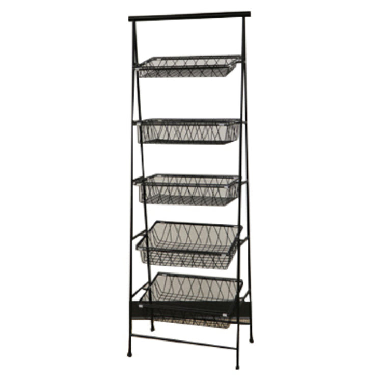 The GET Enterprises IR-951-BK Urban Renewal™ POP™ Pane Stand is a meticulously designed rectangular display solution measuring 23-1/2" x 14" x 64", perfectly catering to diverse market segments in the retail and food service industries. This 5-tier stand is specifically engineered to accommodate various basket models such as IR-903, IR-904, BAMTRY-01, BAMTRY-02, WB-953, and WB-954, although these baskets are not included with the purchase. Constructed from durable metal and finished in an elegant black, this pane stand enhances any display environment with its sleek, modern aesthetic. Packed individually to ensure quality and integrity, the IR-951-BK is ideal for showcasing products in a structured yet visually appealing manner. Its substantial height offers ample space for multiple tiers, which can be utilized to create an organized and engaging presentation of goods. This pane stand's robust construction not only guarantees longevity but also provides a stable foundation, making it a reliable choice for high-traffic areas in commercial spaces. Whether placed in a bustling retail setting or a dynamic food service environment, the GET Enterprises IR-951-BK Urban Renewal™ POP™ Pane Stand stands as a testament to versatile design and functionality.