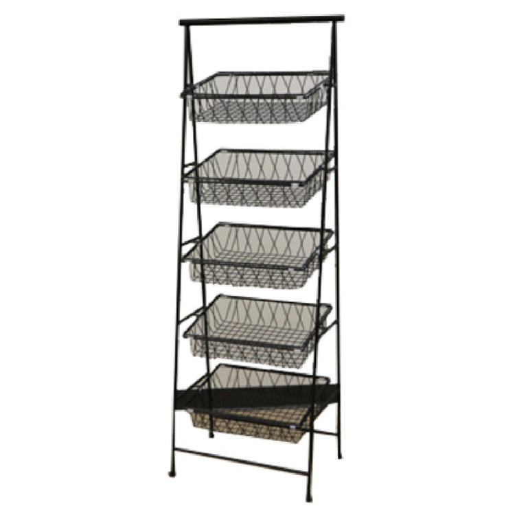 The GET Enterprises IR-951T-BK Urban Renewal™ POP™ Pane Stand 23-1/2" x 14" x 64" Rectangular is a versatile piece of equipment designed to meet a variety of display needs. This robust rectangular stand measures 23-1/2 inches in width, 14 inches in depth, and stands 64 inches tall, providing ample space across its five tilted tiers. Specifically engineered to accommodate models such as the IR-903, IR-904, BAMTRY-01, BAMTRY-02, WB-953, and WB-954, this stand is an adaptable choice for businesses requiring a flexible display solution. Constructed from durable metal and finished in an elegant black, the IR-951T-BK is as stylish as it is functional, fitting seamlessly into modern retail and hospitality environments. Although the baskets are not included, the stand’s design ensures easy integration with existing display components, enhancing its utility across various commercial applications. Packed singularly for convenience, this stand is ideal for venues looking to optimize their merchandising or service areas with a sturdy, aesthetically pleasing display option. Its compact footprint combined with a space-efficient tiered design makes it a strategic choice for maximizing visual merchandising impact without compromising on space efficiency.