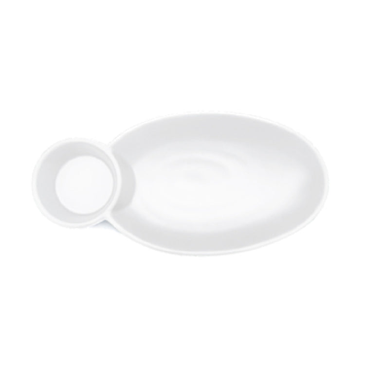 The GET Enterprises JWC1408-W Elite Global Solutions Chip & Dip Bowl is a multifunctional dining accessory tailored to enhance culinary presentations across various settings. With dimensions at 10 inches by 5-1/2 inches by 2-1/8 inches high, it integrates dual compartments: one with a 20-ounce capacity and a smaller 4-ounce section, ideal for serving chips alongside dips or sauces. Its construction from melamine ensures it is break, chip, stain, and scratch resistant, reinforcing its durability in high-traffic environments such as restaurants, cafes, and catering events. Additionally, the bowl is dishwasher safe, facilitating easy maintenance and hygiene. The product is BPA free, ensuring safety for food contact, and is designed in a sleek white color, labeled under the 'Ore, Zen' style, to complement diverse table settings. Packed as six per case, it provides an economical choice for bulk needs. The JWC1408-W’s resilience and practicality suit it to both casual and formal dining, establishing it as a versatile tool within the food service industry.