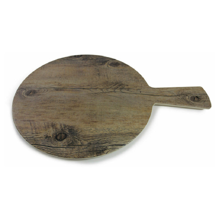 The GET Enterprises M12RW-DW Elite Global Solutions Melamine Serving Board is a meticulously designed serving accessory perfect for various segments within the hospitality industry. With a dimension of 12 inches in diameter and a height of 1/2 inch, this round serving board combines functionality with aesthetic appeal. It features a convenient 5-inch handle, complemented by a hanging hole for easy storage, catering to the needs of busy kitchen environments and enhancing operational efficiency. The board's construction from melamine ensures it is break, chip, stain, and scratch resistant, making it a durable option for high-traffic settings such as restaurants, cafes, and catering services. Additionally, its faux driftwood look finish provides a sophisticated, rustic charm while being BPA free, aligning with modern safety standards. This serving board is dishwasher safe, thereby simplifying the cleaning process and maintaining hygiene. Packaged six per case, it is an ideal choice for establishments seeking to streamline their serving processes without compromising on style or durability. The GET Enterprises M12RW-DW Elite Global Solutions Melamine Serving Board stands out for its resilience and timeless design, offering a practical solution for enhancing food presentation and service efficiency in diverse culinary contexts.
