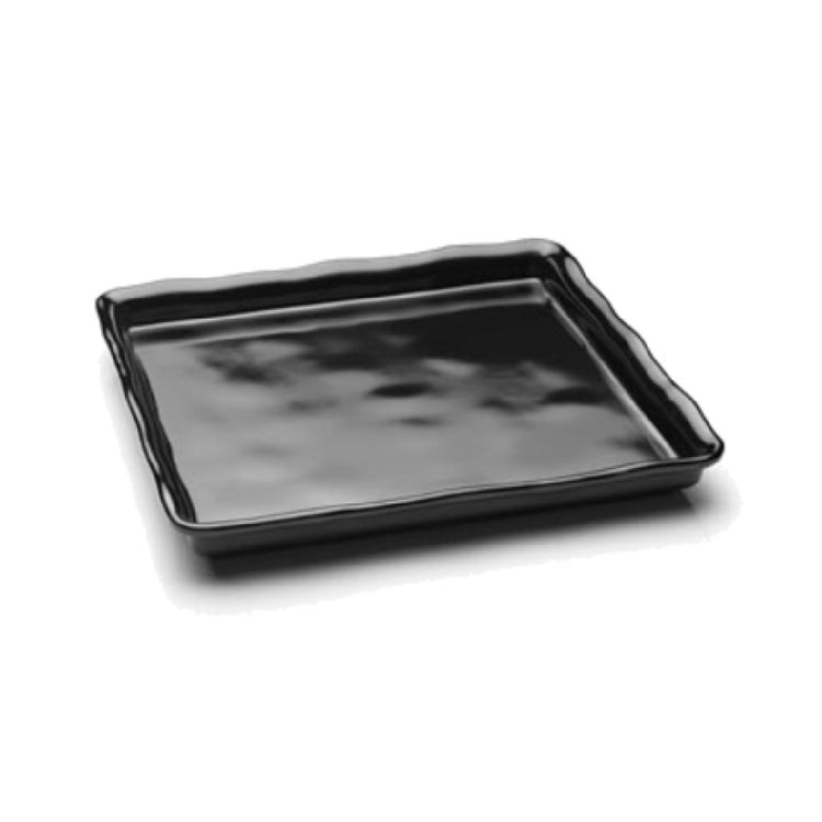 The GET Enterprises M1314-B Elite Global Solutions Tray is a meticulously designed piece, measuring 14"L x 13"W x 1-5/8"H, perfect for diverse culinary environments. This rectangular tray is characterized by its unique organic edge, providing an aesthetic appeal that complements its robust functionality. Crafted from high-quality melamine, it stands out for its exceptional resistance to breakage, chipping, staining, and scratching, ensuring longevity and durability in demanding settings. The tray is dishwasher safe, allowing for convenient and efficient cleaning, while its BPA-free composition underscores a commitment to safety and health standards. Presented in sleek black, this tray is part of 'The Edge' collection, offering a modern and sophisticated touch to any table setting. Packed by four per case, the GET Enterprises M1314-B tray is versatile, suitable for restaurants, catering events, and buffet presentations, providing a reliable and stylish serving solution that meets the multifaceted needs of the food service industry.