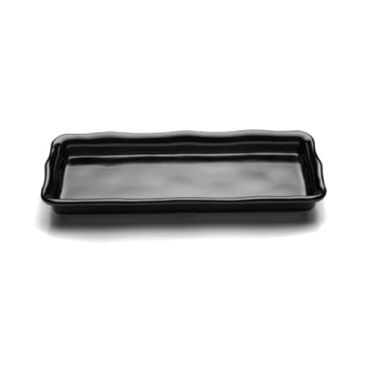 GET Enterprises M1318-B Elite Global Solutions Tray 17-3/4"L x 13"W x 1-1/2"H Rectangular is a versatile and durable serving solution, designed to meet the rigorous demands of the food service industry. With its dimensions of 17-3/4 inches in length, 13 inches in width, and 1-1/2 inches in height, this tray provides ample space for presenting a variety of dishes. Crafted from high-quality melamine, it boasts remarkable resistance to breaking, chipping, staining, and scratching, ensuring longevity and reducing replacement costs. The organic edged design adds a touch of elegance, making it suitable for both casual and upscale dining environments. This tray is dishwasher safe, facilitating effortless cleaning and maintenance, and is BPA free, assuring safety and peace of mind for health-conscious consumers. Its sleek black finish, part of 'The Edge' collection, enhances its aesthetic appeal, making it an attractive option for catering services, restaurants, and hospitality venues that prioritize style and functionality. Packed by three each per case, the GET Enterprises M1318-B is an essential asset for businesses seeking reliable and attractive serveware that withstands the challenges of high-volume use while maintaining its pristine appearance.