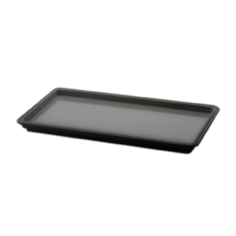 The GET Enterprises M1581-B Elite Global Solutions Tray is a precisely crafted rectangular tray measuring 15 inches in length, 8 inches in width, and 1 inch in height. Its distinct beaded edge design enhances its visual appeal, making it suitable for various settings. Constructed from high-quality melamine, this tray is engineered to be break, chip, stain, and scratch resistant, ensuring longevity and resilience in demanding environments. The M1581-B is dishwasher safe, providing convenience and ease of cleaning essential for high-efficiency operations. Notably, the tray is BPA free, aligning with health safety standards and making it ideal for food service applications. Available in a sleek black Venetian finish, this tray is packed three per case, offering value for establishments requiring multiple units. The M1581-B Elite Global Solutions Tray is versatile and efficient, catering to diverse market segments such as restaurants, catering services, and hospitality industries, where durability and aesthetic appeal are paramount.