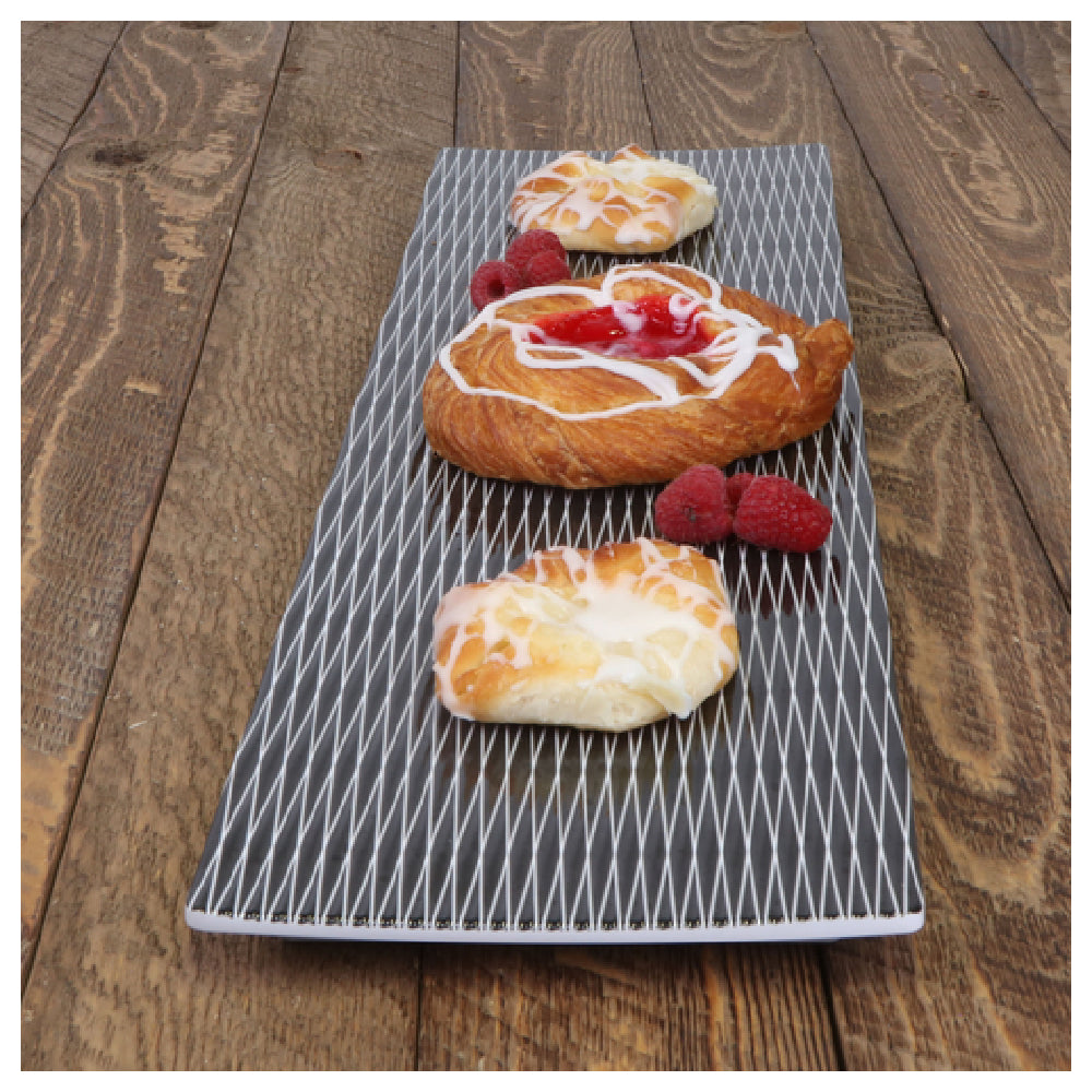 The GET Enterprises M20638RC-B Elite Global Solutions Tray GN 2/4 is a meticulously crafted rectangular serving tray measuring 20-7/8 inches in length, 6-3/8 inches in width, and 3/4 inches in height, designed to meet the demanding needs of the food service industry. Engineered with break, chip, stain, and scratch-resistant properties, this tray stands out as a durable option for both high-traffic restaurants and catering services. Its construction from BPA-free melamine ensures a lightweight yet robust product, offering an eco-conscious choice while maintaining the aesthetic appeal of traditional materials. The tray’s white surface, adorned with a sleek black decal in the Jewel design, provides a versatile backdrop suitable for various gastronomic presentations. Furthermore, its dishwasher-safe feature ensures it meets the hygiene standards essential for commercial kitchens. Packed in sets of three per case, this tray is an excellent investment for establishments seeking reliable and stylish serveware solutions. With its blend of practicality and elegance, the GET Enterprises M20638RC-B tray caters to diverse market segments, from casual dining to upscale events, ensuring consistent performance and sleek presentation across the board.