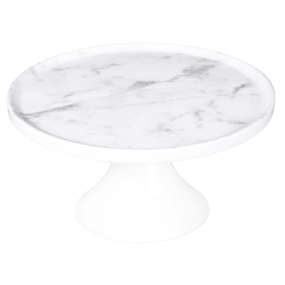 The GET Enterprises M8RPKT-C Elite Global Solutions Melamine Plate Stand is an 8-inch diameter by 4-inch height round stand designed to enhance the presentation of plates in various settings. This two-piece stand features a screw-on top, ensuring stability and ease of assembly, which makes it particularly suitable for commercial dining environments. Made from high-quality melamine, it is break, chip, stain, and scratch resistant, offering durability and longevity that is vital in high-traffic areas. The stand is dishwasher safe, providing convenience for busy kitchens and ensuring hygiene with minimal effort. Additionally, it is BPA free, making it a safe choice for food service operations. The faux Carrara marble look adds an elegant touch, making it an appealing choice for upscale restaurants or catering events seeking a sophisticated presentation. The Sierra finish further enhances its aesthetic appeal, aligning with modern design trends. Packed by four per case, this melamine plate stand offers a practical and stylish solution for displaying dishes in diverse market segments, including hospitality, catering, and fine dining industries, where presentation and durability are key considerations.