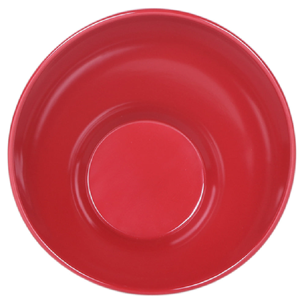 The GET Enterprises M9-CBR Elite Global Solutions Bowl - 7/8 Qt. (28 Oz.) 9" Dia. X 2-1/2" X 5"H is a well-crafted, medium-sized bowl designed to meet diverse needs in various segments within the food service industry. With a capacity of 28 ounces, this round, angled bowl is ideal for serving a variety of dishes. The bowl is constructed from high-quality melamine, ensuring it is break, chip, stain, and scratch resistant, which enhances its durability and longevity in high-traffic environments. Its dimensions - 9 inches in diameter, 2-1/2 inches in height, and 5 inches in height - make it a versatile addition to any dining setup, accommodating both casual and formal dining experiences. This Pappasan-style bowl is BPA-free, prioritizing user safety and regulatory compliance. Its cranberry color adds a touch of elegance and vibrancy to the table setting. Additionally, the bowl is dishwasher safe, simplifying the cleaning process and maintaining a high standard of hygiene. Packed in cases of four, it is a practical choice for establishments looking to invest in reliable and aesthetically pleasing tableware.