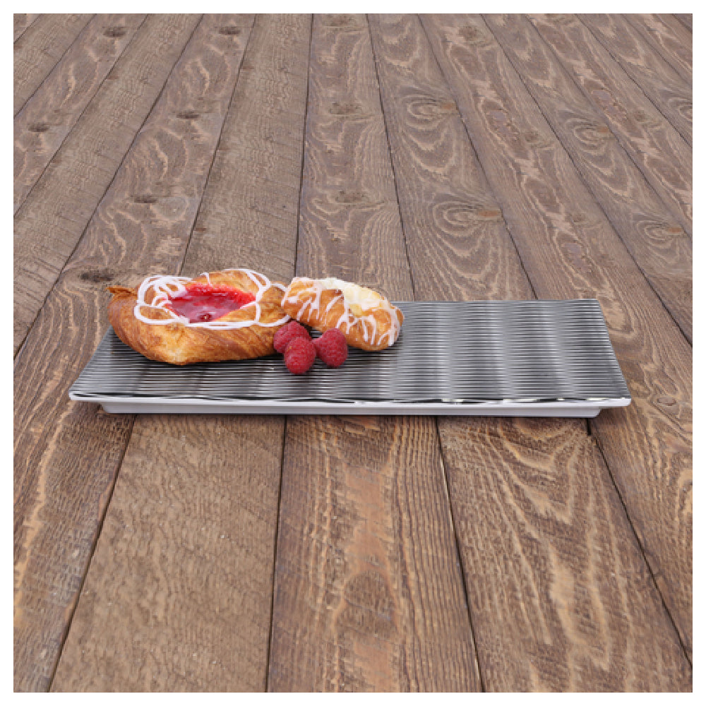 The GET Enterprises M978RC-B Elite Global Solutions Tray is a versatile and durable rectangular serving solution, measuring 12-3/4 inches in length, 9-7/8 inches in width, and 3/4 inch in height. This GN 1/2 tray is crafted from high-quality melamine, a material known for its durability and resilience. Its standout features include resistance to breakage, chipping, staining, and scratching, making it an ideal choice for high-traffic food service environments. The tray is dishwasher safe, ensuring ease of cleaning and maintenance, crucial for busy commercial kitchens. Additionally, the tray is BPA-free, aligning with modern health and safety standards. The white base is accentuated by a black decal, part of the Jewel collection, giving it an elegant aesthetic suitable for various dining settings. Packed in cases of three, the M978RC-B tray caters to industries ranging from restaurants and hotels to catering services, providing a reliable and stylish presentation platform for a variety of culinary creations. Its robust construction combined with an appealing design makes it a valuable asset in any professional food service operation, meeting both practical and aesthetic needs effectively.