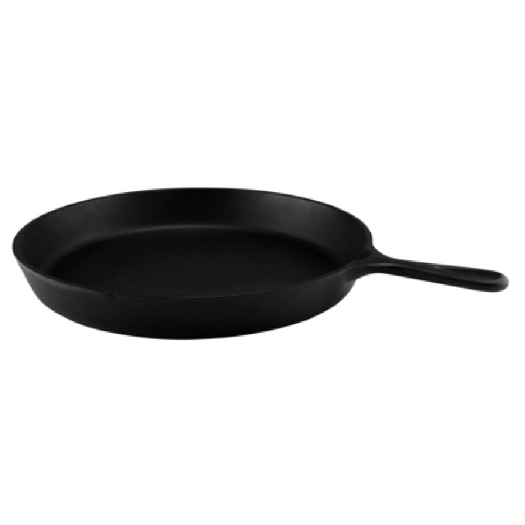 The GET Enterprises MFP1075-B Elite Global Solutions Melamine Fry Pan is a meticulously engineered kitchen essential measuring 10-3/4 inches in diameter and 1-1/2 inches in height. This round fry pan features a 3-7/8-inch handle, providing a practical design that is both user-friendly and efficient. Crafted from durable melamine, this fry pan mimics the appearance of cast iron while offering a host of practical benefits. It is break, chip, stain, and scratch-resistant, ensuring longevity and reliability in busy kitchen environments. This makes it an ideal choice for restaurants, catering services, and home kitchens that demand high-performance cookware. Additionally, the fry pan is dishwasher safe, facilitating easy cleaning and maintenance, and is BPA free, ensuring safety in food service applications. The timeless black color enhances its aesthetic appeal, making it suitable for diverse culinary settings. Packed in cases of three, the GET Enterprises MFP1075-B represents an excellent investment for those seeking a durable and stylish cooking solution. Its unique blend of style and function makes it a versatile product, serving the varied needs of professional chefs and home cooks alike by providing a robust, safe, and visually appealing cooking surface.