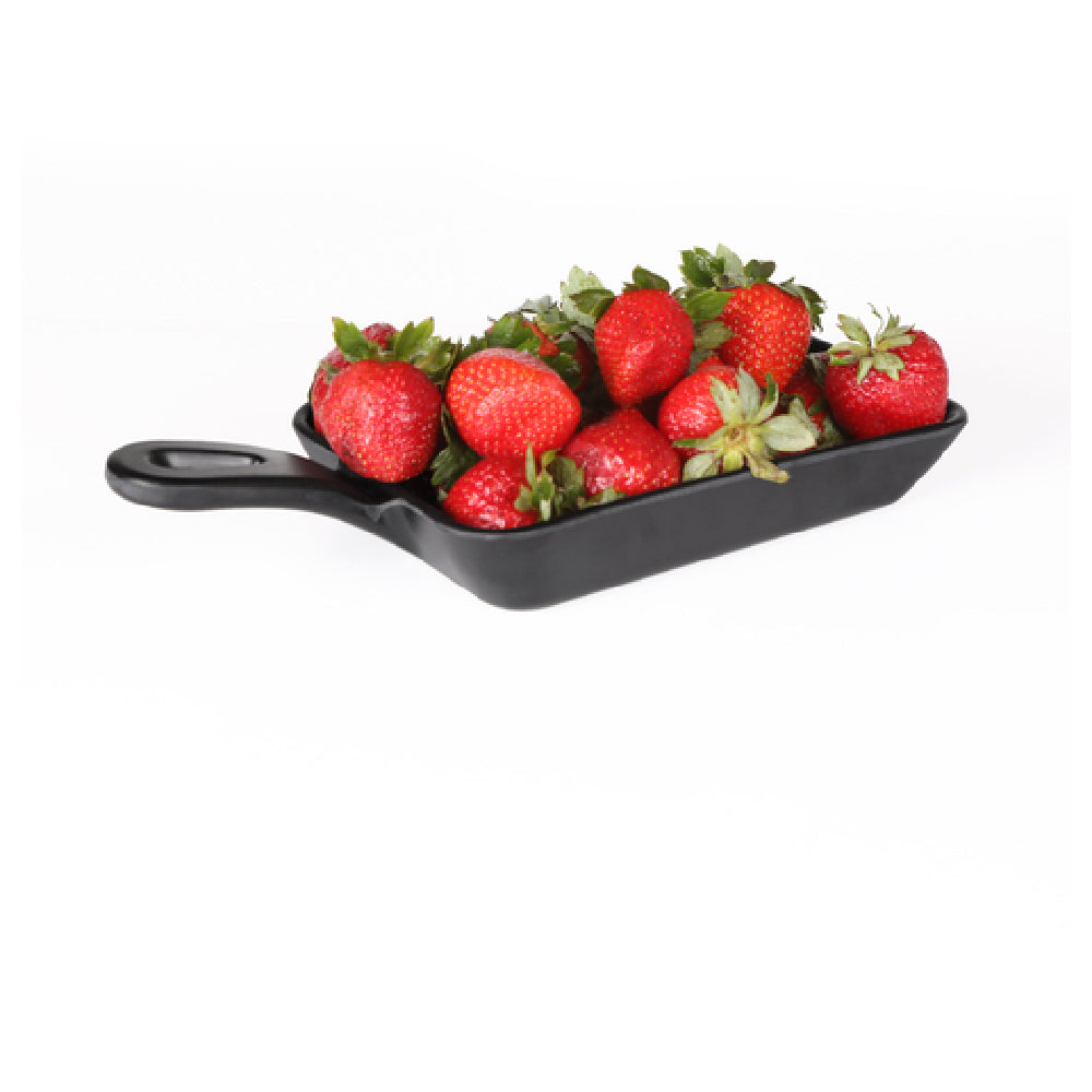 The GET Enterprises MFP643-B Elite Global Solutions Melamine Fry Pan is a highly durable and versatile kitchen tool measuring 6-5/8 inches by 4-1/2 inches by 1-1/8 inches in height, making it an excellent choice for both professional and home kitchens. This rectangular fry pan is designed with a convenient 3-inch handle, offering ease of use and control during cooking. Constructed from melamine with a faux cast iron finish, it provides a stylish appearance while maintaining the practicality of being break, chip, stain, and scratch resistant. These features ensure longevity and reliability in various culinary environments. Furthermore, the fry pan is dishwasher safe, promoting easy cleanup and maintenance, and is BPA free, ensuring user safety. Available in a sleek black color, the pan is packed in cases of 12, catering to larger establishments needing bulk purchases. This product's robust construction and resistance to wear make it a valuable asset in a range of settings, from busy restaurant kitchens to casual dining establishments, where durability and function are paramount. The GET Enterprises MFP643-B Melamine Fry Pan stands out as a dependable and aesthetically pleasing option for those seeking quality cookware solutions.