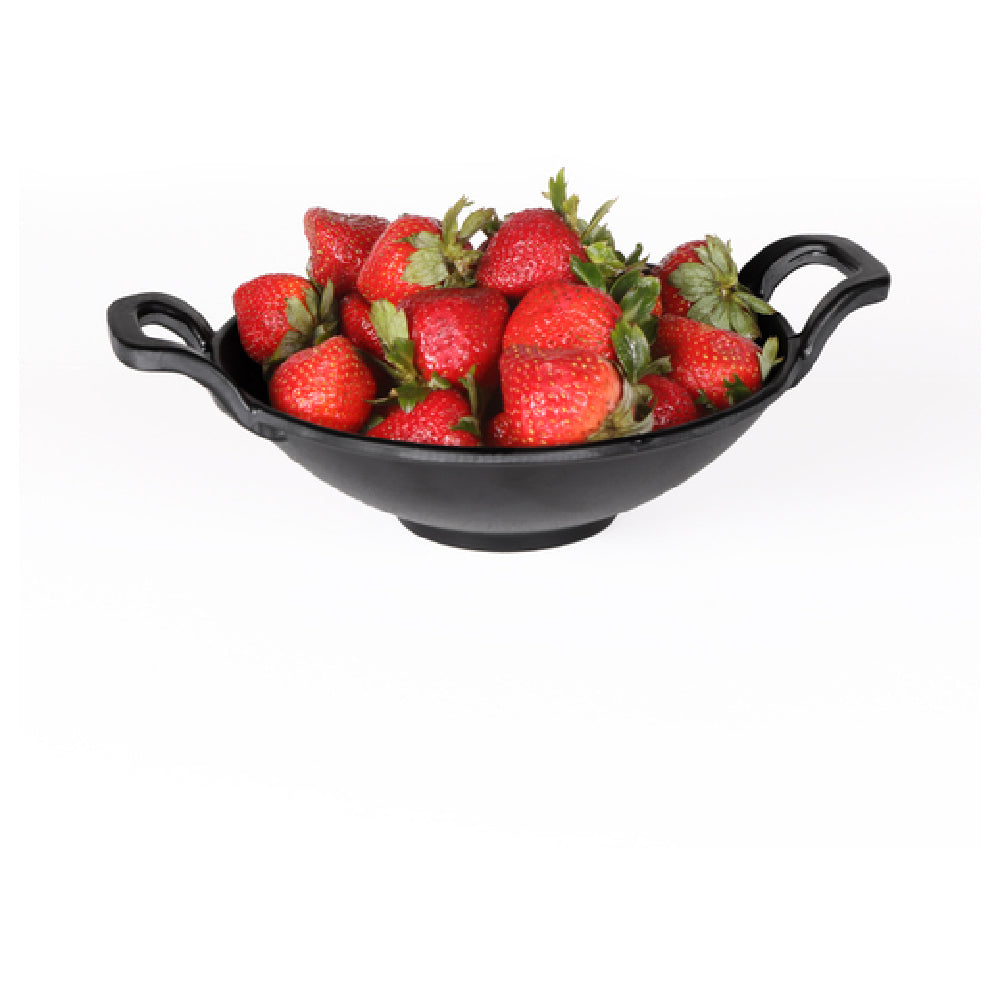 The GET Enterprises MFP7218-B Elite Global Solutions Melamine Wok is a versatile culinary tool designed for both professional and home kitchens. Measuring 7 inches in diameter and 2-1/8 inches in height, it features dual 1-1/4 inch handles, enhancing its functionality and ease of use. This wok is crafted from melamine, giving it a faux cast iron appearance while ensuring it remains lightweight and easy to handle. Its construction makes it break, chip, stain, and scratch resistant, offering longevity and durability even in fast-paced environments. Additionally, it is BPA-free, ensuring safety in food preparation. The wok's dishwasher-safe attribute streamlines the cleaning process, making it convenient for repeated use. Packaged in cases of 12, it is particularly suited for commercial settings requiring multiple units. Its black color provides a sleek and professional aesthetic that complements various kitchen decor styles. The GET Enterprises MFP7218-B Elite Global Solutions Melamine Wok is ideal for diverse markets, from restaurants and catering services to home kitchens, offering a reliable and stylish option for those seeking a combination of durability, safety, and aesthetic appeal in a kitchen essential.