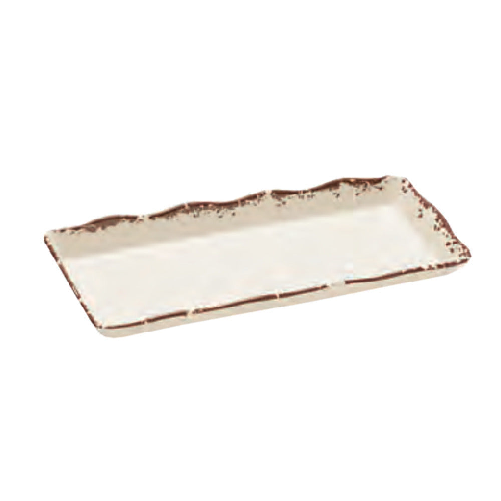 The GET Enterprises ML-154-TC Milano™/Bake & Brew™ Display Tray 14" x 5-1/2" Rectangular is a meticulously designed serving solution tailored for both the hospitality and food service industries. Its dimensions, 14 inches by 5-1/2 inches, create an ideal size for presenting a variety of culinary items, from pastries to appetizers, enhancing the visual appeal of any dish. The tray features a distinctive scallop edge that adds an elegant touch to its appearance. Made from high-quality melamine, this display tray is break-resistant, ensuring durability and longevity in high-traffic environments. Its Tuscan design provides a classic aesthetic that complements a wide range of tabletop settings. NSF certification guarantees that this tray meets strict standards for public health safety. Additionally, its dishwasher-safe property simplifies the cleaning process, making it a convenient choice for busy kitchens. Packed in cases of six, this tray is an excellent investment for establishments seeking to elevate their presentation while maintaining practicality and resilience in daily operations. Whether used in a bustling café or a sophisticated catering event, the GET Enterprises ML-154-TC Milano™/Bake & Brew™ Display Tray seamlessly combines functionality with style, making it a valuable asset for any food service professional.