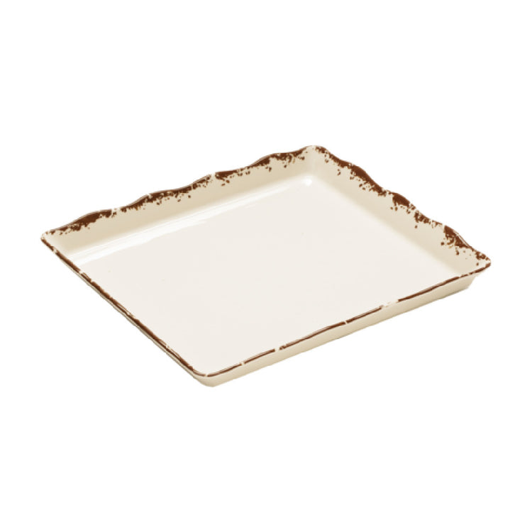 The GET Enterprises ML-155-TC Bake & Brew™ Display Tray 14" X 11-1/2" Rectangular is a versatile addition to any dining or food service operation, offering a blend of elegance and durability. Measuring 14 inches by 11-1/2 inches, this rectangular tray features a unique scallop edge design that enhances its aesthetic appeal. Constructed from break-resistant melamine, it is engineered to withstand the rigors of commercial use, making it an ideal choice for high-traffic environments. The tray's dishwasher-safe nature ensures hassle-free cleaning, contributing to efficient operational workflows. Being BPA free, it meets health and safety standards, offering peace of mind to those prioritizing customer well-being. The Tuscan color adds a touch of rustic charm, making it suitable for both modern and traditional settings. Additionally, its NSF certification signifies compliance with stringent quality regulations, further emphasizing its reliability. With each case containing six trays, the GET Enterprises ML-155-TC tray is well-suited for cafes, bakeries, and catering services looking to enhance their presentation and service capabilities without compromising on quality or safety.