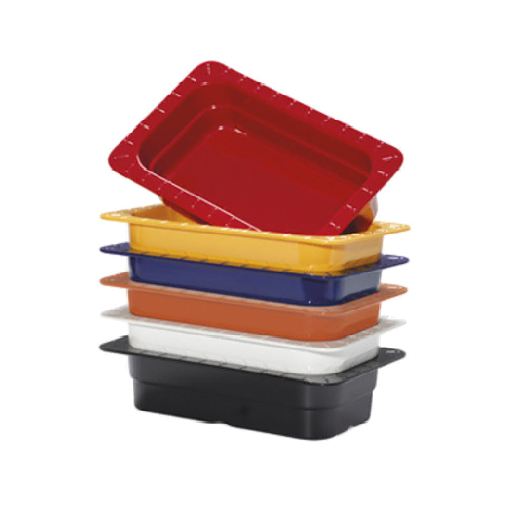 The GET Enterprises ML-17-BUI Food Pan/Insert Pan GN 1/3 Size (12.80" X 6.93") 2-1/2" Deep is designed to meet the precise needs of the food service industry with its adherence to Gastronorm specifications. This innovative food pan is crafted from durable, break-resistant melamine, ensuring longevity and resistance to damage in busy kitchen environments. It is specifically designed for cold applications, making it a perfect choice for buffets, salad bars, or refrigerated displays. Offered in a mix pack of six colors, with one of each color, it allows for easy segmentation and organization of food items, enhancing both functionality and aesthetics. The pan is dishwasher safe, simplifying the cleaning process and maintaining efficiency in a fast-paced kitchen. Conforming to a standard 12" x 20" opening, this pan integrates seamlessly into existing kitchen setups, providing versatility and compatibility. Certified by NSF, it meets stringent health and safety requirements, offering peace of mind to food service professionals. Ideal for catering, restaurants, and hospitality sectors, the GET Enterprises ML-17-BUI Food Pan satisfies diverse market needs by delivering reliable performance and practical design.