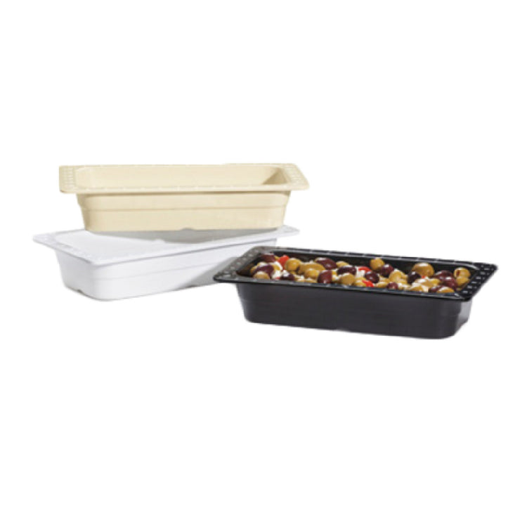 The GET Enterprises ML-19-W Food Pan/Insert Pan GN Full Size (20.87" x 12.80") 2-1/2" Deep is specifically designed for cold applications, meeting the rigorous standards of Gastronorm specifications. This full-size pan measures 20.87 inches in length and 12.80 inches in width with a depth of 2-1/2 inches, making it compatible with standard 12" x 20" openings. Crafted from break-resistant white melamine, this pan ensures durability and longevity in professional kitchen environments. Additionally, the pan is dishwasher safe, facilitating ease of cleaning and maintenance, which is crucial for maintaining high hygiene standards. With its NSF certification, the GET Enterprises ML-19-W assures compliance with strict public health and safety requirements. This product is packed in sets of three per case, providing convenience for bulk usage in various food service settings. Suitable for use in catering, buffet setups, and commercial kitchens, this food pan is a reliable choice for chefs and food service professionals who require durable and safe cold storage solutions.