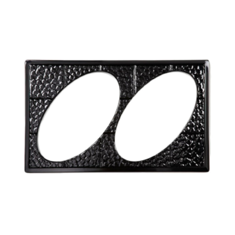 The GET Enterprises ML-191-BK Tile Full Size with (2) Cut Outs For ML-182 is a specialized product designed for cold applications only. Crafted from melamine, this tile offers exceptional durability, being break-resistant and dishwasher safe, which ensures longevity and ease of maintenance. The tile is black, providing a sleek and modern aesthetic suitable for various display settings. Its full-size design includes two cut-outs specifically for the ML-182 model, offering versatility and compatibility within your setup. As an NSF certified product, it meets rigorous public health standards, ensuring safety and reliability in professional environments. This makes it an ideal choice for institutions that prioritize quality and compliance, such as restaurants, catering services, and hospitality sectors. The thoughtful engineering behind the GET Enterprises ML-191-BK Tile emphasizes both practicality and functionality, catering to industry professionals who require robust and dependable serving solutions. Packed by one each, this tile is an excellent component for enhancing presentation and efficiency in food service operations.