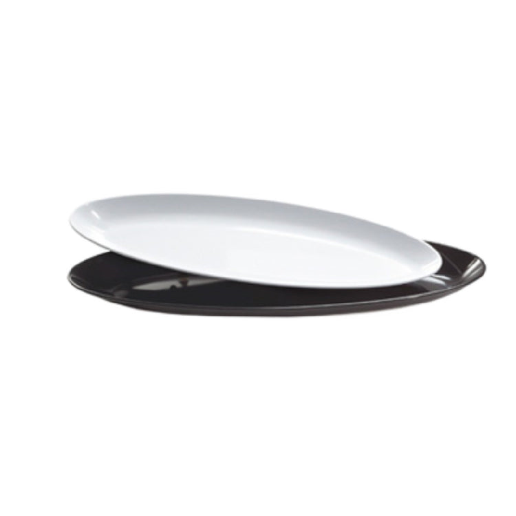 The GET Enterprises ML-255-W Siciliano® Platter is a sophisticated serving option with a generous capacity of 4 quarts, and it can hold up to 4.3 quarts when filled to the rim. Measuring 27 inches by 10 inches with a height of 2 inches, this oval platter is designed to accommodate a variety of culinary presentations. Made from durable melamine, it is break-resistant and ideal for high-volume environments such as catering services, restaurants, and hotels. The platter's classic white color complements any table setting, enhancing the visual appeal of the food served. It is dishwasher safe, ensuring easy maintenance and quick turnaround in fast-paced food service operations. The GET Enterprises ML-255-W is NSF certified, verifying its adherence to high standards of safety and sanitation, making it suitable for professional use. The platter is packed with three pieces per case, providing a practical solution for establishments seeking a reliable and attractive serving ware option. Its combination of durability, ample size, and elegant design makes it a versatile addition to any hospitality setting, catering to diverse market needs within the industry by providing both functionality and style.
