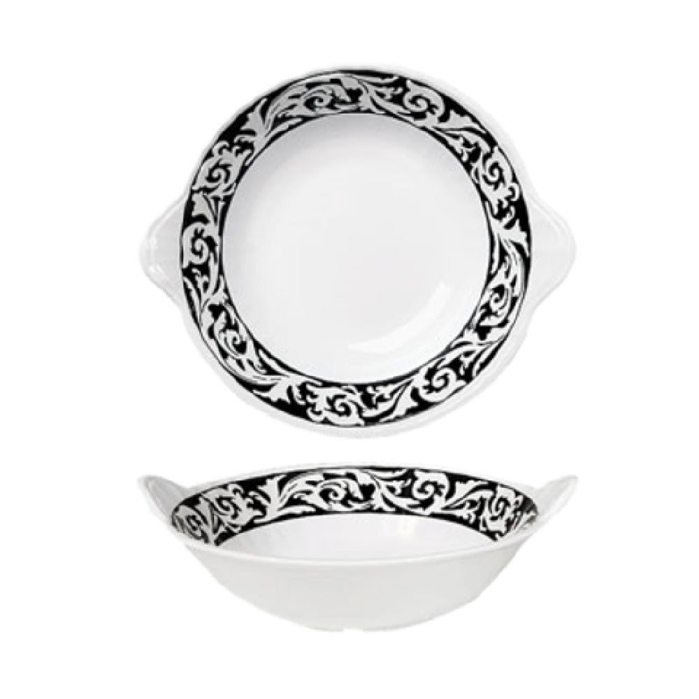 The GET Enterprises ML-93-SO Soho™ Bowl 2 Qt. (2.4 Qt. Rim Full) is a versatile addition to any culinary setting, measuring 12-1/2 inches in diameter and 3 inches in height. This bowl is expertly crafted from durable melamine, offering break-resistant properties that make it a reliable choice for high-traffic environments. Its design includes convenient handles and rubber feet, ensuring stability and ease of use during service, while its dishwasher-safe nature allows for effortless cleaning. The bowl's NSF certification underscores its compliance with stringent public health and safety standards, making it suitable for professional kitchens that prioritize hygiene. With a capacity of 2 quarts (2.4 quarts when filled to the rim), the GET Enterprises ML-93-SO Soho™ Bowl is ideal for both food preparation and presentation in restaurants, catering services, and hospitality venues. Packed by six per case, this bowl provides a practical and efficient solution for bulk purchasing. Its robust construction and thoughtful design make it an essential tool for foodservice professionals seeking durability without compromising on style or functionality.