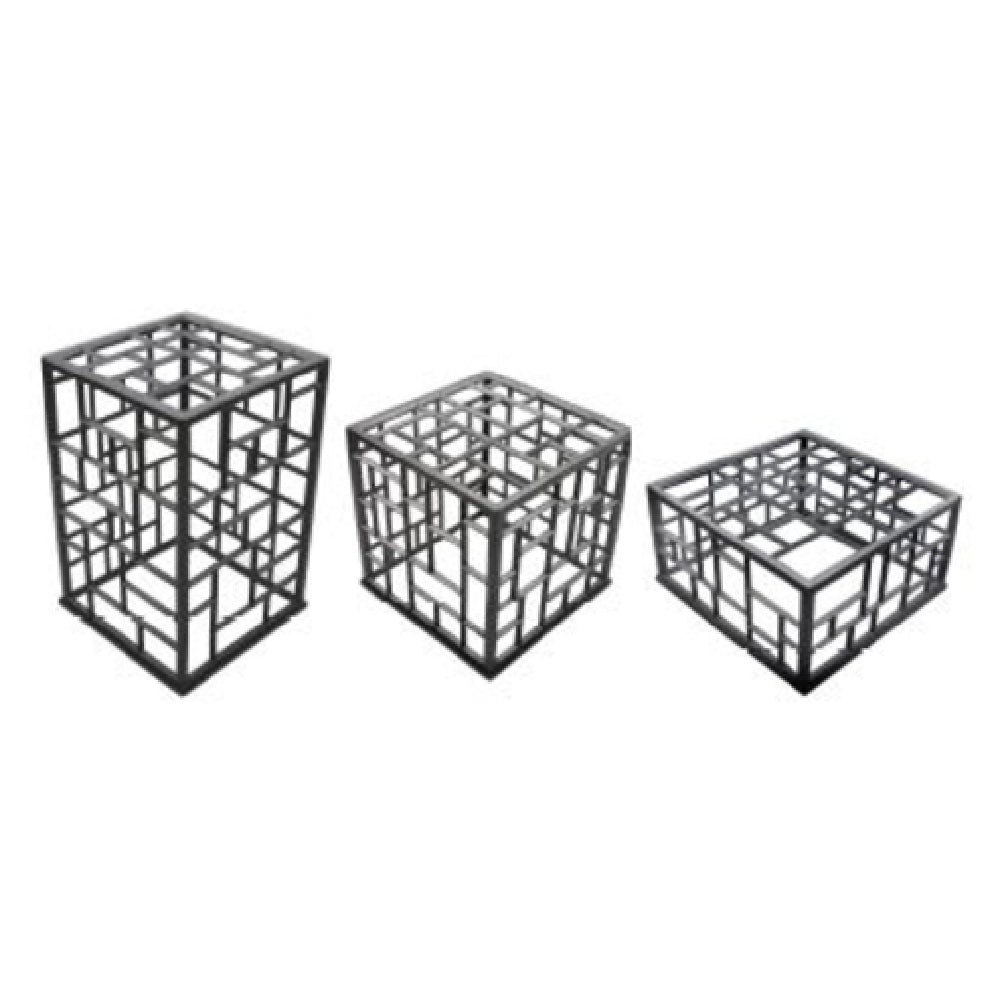 The GET Enterprises MONPDCSETST Bugambilia® Mondrian Riser Set is a meticulously designed 3-piece collection that embodies both functionality and aesthetic appeal, suitable for diverse segments within the hospitality and food service industries. This set includes three distinct risers, each crafted from high-quality cast aluminum, ensuring durability and long-lasting performance. The risers measure 10" x 10" x 14-1/2"H, 11" x 11" x 10-3/4"H, and 13" x 13" x 6-3/4"H, offering versatile display options for various presentation needs. Each piece features a sleek square design, complemented by a robust powder coating that adds a layer of protection against wear and tear, making it ideal for frequent use. The inclusion of steel in its construction enhances its structural integrity, providing reliable support for displayed items. This riser set requires a 30-day lead time for delivery, emphasizing the customized attention given to its production and packaging, with each set packed individually. The GET Enterprises MONPDCSETST Bugambilia® Mondrian Riser Set is an exceptional choice for those looking to elevate their presentation aesthetics, combining practicality with a modern design that is well-suited for upscale dining settings and professional catering environments.