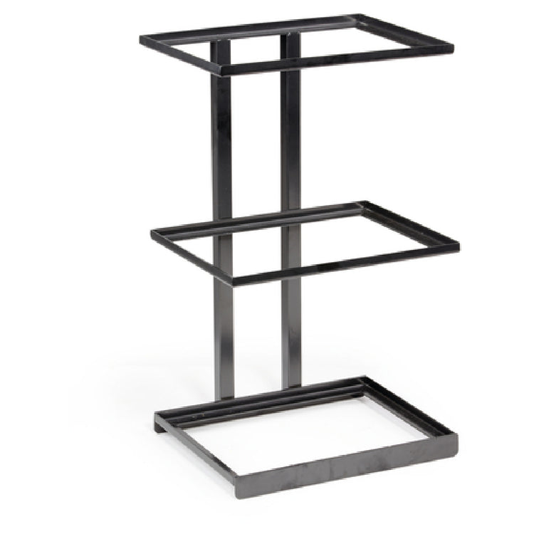The GET Enterprises MTS-20L-MG Urban Renewal™ Merchandiser Stand 3-tier Large is a versatile display solution, expertly designed for commercial environments seeking functionality and style. Standing at 20-1/2 inches high, this merchandiser stand features a three-tier design, ideal for showcasing a variety of products in a visually appealing manner. It is specifically crafted to hold three rectangular baskets, each measuring 12 inches by 9-1/4 inches, although these baskets are not included in the purchase. The robust metal gray finish ensures durability and complements modern retail settings. This stand is compatible with a range of baskets, including models WB-962, WB-964, WB-1292, WB-1294, WB-962WD, WB-964WD, WB-1292WD, and WB-1294WD, providing flexibility in display configurations. Packed as a single unit, the GET Enterprises MTS-20L-MG stand is an excellent choice for markets such as retail stores, bakeries, and cafes that require a reliable and modular display system. Its large size and tiered design not only maximize display space but also enhance product visibility, making it a strategic asset for boosting impulse sales and customer engagement in a variety of settings.