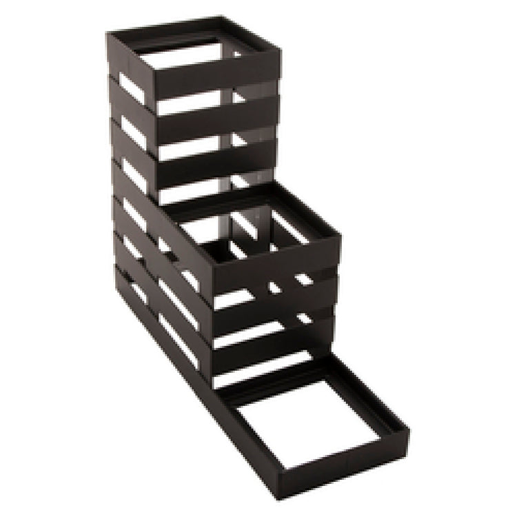 The GET Enterprises MTS-36-MG Urban Renewal™ Curator™ Condiment Stand is a meticulously designed product, ideal for establishments looking to organize condiments efficiently. Measuring 12-1/2 x 4-1/4" x 9-3/4", this condiment stand provides a compact yet spacious solution for holding condiment bowls. Its 3-tier structure is specifically engineered to accommodate 4" x 4" square bowls, allowing for a versatile arrangement of condiments, perfect for both self-service and back-of-house applications. Made from powder-coated iron in a sleek metal gray finish, the stand combines durability with a modern aesthetic, ensuring it complements a variety of restaurant decors while resisting wear and corrosion. The stand is packed in cases of 2 each, offering convenience for bulk purchases. Suitable for a range of industry segments, from fast food outlets to fine dining restaurants, this condiment stand stands out for its practicality and robust construction. Its thoughtful design not only optimizes space but also enhances the visual appeal of condiment presentations, making it a valuable addition to any food service environment.