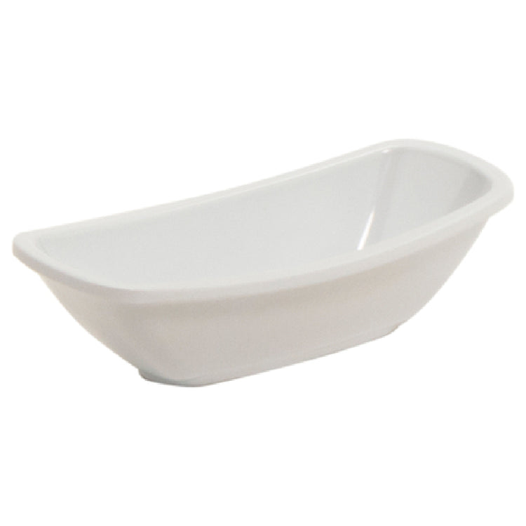 The GET Enterprises OB-1-W Oval Acclaim Ramekin Sauce Cup is a meticulously designed piece, perfect for various culinary settings. With dimensions of 3-3/5 inches by 1-4/5 inches by 3/4 inch, this 1-ounce rectangular ramekin is an ideal choice for serving sauces, dressings, or small portions in a stylish manner. Constructed from durable melamine, it combines practicality with elegance, making it a valuable asset for any dining environment. Its white hue complements a wide range of table settings, ensuring a seamless integration. As a dishwasher-safe product, it offers ease of maintenance and convenience, allowing for efficient cleaning processes in high-demand food service operations. The melamine material is NSF-certified and BPA-free, assuring adherence to strict safety and quality standards. This ensures peace of mind for professional kitchens that prioritize health and safety compliance. Packed by 2 dozen per case, this ramekin is an excellent choice for restaurants, catering services, and hospitality businesses that require reliable and attractive serving solutions. The GET Enterprises OB-1-W ramekin embodies functionality and aesthetic appeal, making it a versatile addition to food presentation in diverse industry segments.