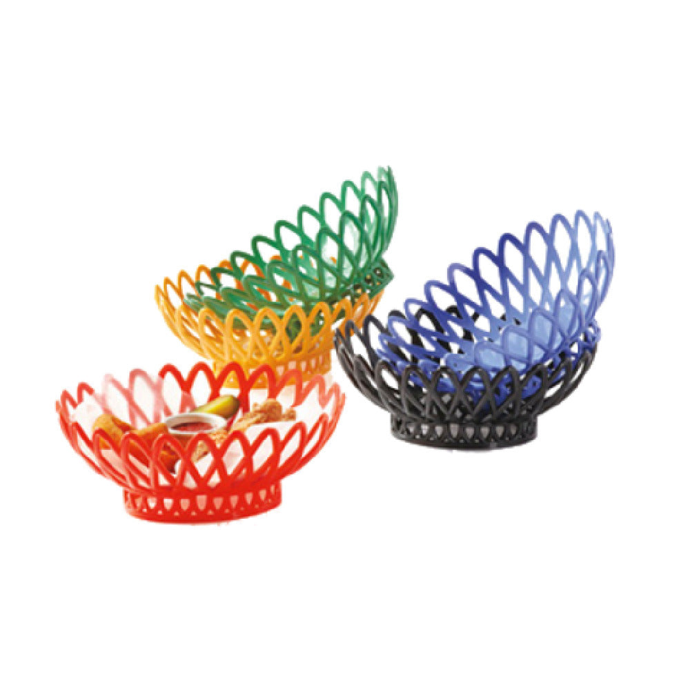 The GET Enterprises OB-940-TY Clipper Mill Bread & Bun Basket 10" X 8-1/4" X 4" Deep Oval is an essential item for the food service industry, offering both functionality and aesthetic appeal. Its oval design, with dimensions of 10 inches in length, 8-1/4 inches in width, and a depth of 4 inches, provides ample space to hold a variety of breads and buns, making it suitable for restaurants, catering services, and bakeries. Constructed from durable polypropylene, this basket is both lightweight and sturdy, ensuring long-lasting use in busy environments. The tropical yellow color adds a vibrant touch to any table setting, enhancing the presentation of its contents. Furthermore, it is dishwasher safe, facilitating easy cleaning and maintenance, which is particularly beneficial for high-turnover establishments. Packed by the dozen, this product is a practical choice for businesses requiring multiple baskets to serve large crowds efficiently. The GET Enterprises OB-940-TY Clipper Mill Bread & Bun Basket combines a practical design with an appealing aesthetic, making it a valuable addition for any food service operation looking to improve both efficiency and presentation. Its combination of size, material, and color provides a unique value proposition for varying market segments within the industry.