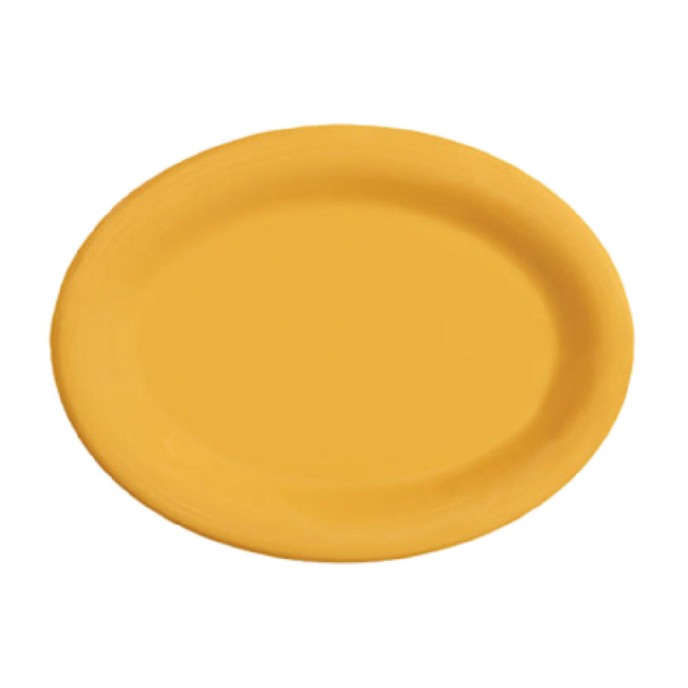 The GET Enterprises OP-120-TY Diamond Mardi Gras™ Platter 12"L X 9"W Oval is a versatile and robust solution designed for various dining settings. Measuring 12 inches long and 9 inches wide, this oval platter is crafted from high-quality melamine, a material known for its break-resistance, ensuring long-lasting durability in high-traffic environments. Its vibrant tropical yellow color adds a lively touch to any table setting, making it suitable for both casual and festive occasions. The platter is dishwasher safe, facilitating easy cleaning and maintenance, which is ideal for busy restaurants and catering services. Additionally, it is BPA free, underscoring its safety for foodservice applications. The GET Enterprises OP-120-TY is NSF certified, meeting rigorous public health and safety standards, thus providing peace of mind to professional chefs and foodservice operators. Packed by the dozen, this platter is not only a practical choice for large-scale dining establishments but also an attractive option for enhancing the presentation of culinary creations. Its combination of aesthetic appeal and functional design makes it a valuable addition to any dining inventory, accommodating a wide range of market segments within the hospitality industry.