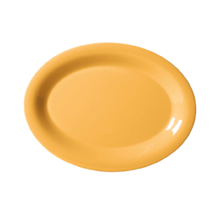 The GET Enterprises OP-135-TY Diamond Mardi Gras™ Platter is a robust and versatile serving solution, measuring 13-1/2 inches in length and 10-1/4 inches in width, with an elegant oval shape that adds a touch of sophistication to any dining presentation. Fabricated from durable melamine, this platter is designed to be break-resistant, making it an ideal choice for high-traffic environments such as restaurants, catering events, and hospitality settings where durability is paramount. Its tropical yellow hue is part of the Diamond Mardi Gras collection, which can add vibrant color to any tabletop arrangement. The platter is also BPA-free, ensuring safety in food service applications, and is dishwasher safe, offering convenience and efficiency in cleaning processes. Certified by NSF, this platter meets high standards for sanitation and safety, positioning it as a reliable choice for the food service industry. Packed by the dozen, the GET Enterprises OP-135-TY platter is an excellent option for establishments seeking to maintain a uniform and lively presentation while prioritizing functionality and durability.
