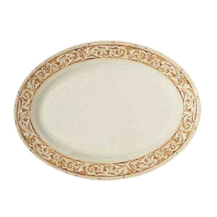 The GET Enterprises OP-630-OL Olympia™ Platter 30" x 20-1/4" Oval is a meticulously crafted serving solution designed to meet the diverse needs of the food service industry. Measuring 30 inches in length and 20-1/4 inches in width, this oval platter provides ample space for presenting a variety of culinary creations. Constructed from durable melamine, it boasts a break-resistant quality, making it ideal for high-traffic environments such as restaurants, catering services, and buffets. Its dishwasher-safe attribute ensures convenient and efficient cleaning, maintaining its pristine appearance even after repeated use. Additionally, the platter is NSF certified, signifying its adherence to rigorous public health and safety standards, which is crucial for establishments prioritizing hygiene and safety. This platter is packaged six per case, allowing for bulk purchasing that caters to large-scale operations. The GET Enterprises OP-630-OL Olympia™ Platter seamlessly combines functionality, durability, and compliance, making it an indispensable asset for any professional kitchen seeking a reliable serving solution. Its elegant design and robust construction underscore its suitability for both everyday use and special occasions, enhancing the presentation of dishes while ensuring lasting performance in demanding environments.