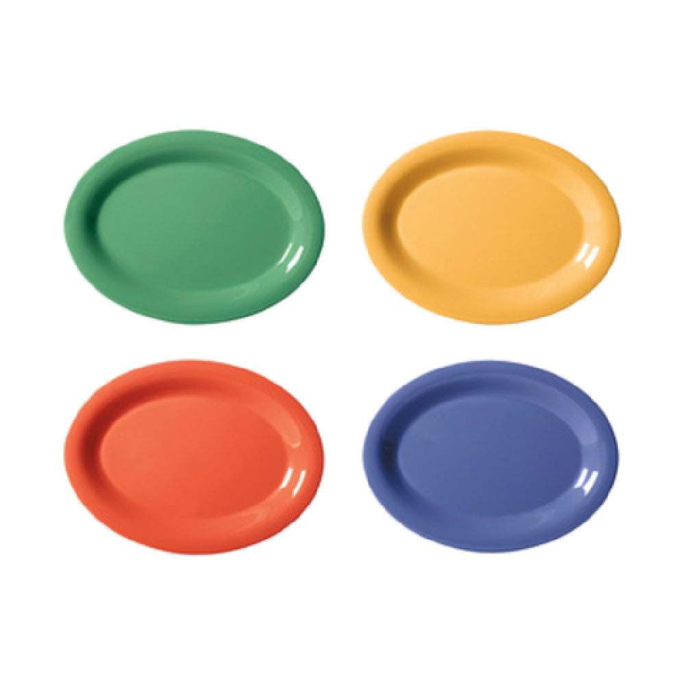 The GET Enterprises OP-950-MIX Diamond Mardi Gras™ Platter is an elegantly designed, oval-shaped serving solution measuring 9-3/4 inches in length and 7-1/4 inches in width. Crafted from high-quality melamine, this platter ensures durability and break-resistance, making it an ideal choice for bustling food service environments. With its dishwasher-safe feature, maintenance is both effortless and efficient, further enhancing its appeal in busy settings. The platter is BPA-free, ensuring safety for all consumers. It comes in a vibrant mix pack of four festive Mardi Gras™ colors including tropical yellow, rio orange, peacock blue, and rainforest green, adding a splash of color and excitement to any dining presentation. This product is NSF certified, underscoring its compliance with stringent public health and safety standards. Packed by 2 dozen per case, it caters to large-scale operations such as restaurants, catering events, or institutional dining facilities where durability, safety, and colorful presentation are paramount. The GET Enterprises OP-950-MIX platter is a versatile and reliable choice, providing both aesthetic appeal and functional excellence to enhance the dining experience across various segments of the food service industry.