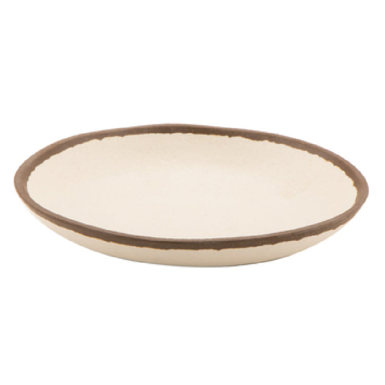 The GET Enterprises P-101-CRM Pottery Market™ Dinner Plate - 10-1/2" Dia. Round is a versatile choice for the foodservice industry, combining practicality with a classic design. This cream-colored dinner plate, accented with a subtle brown trim, is expertly crafted from melamine, a material renowned for its break-resistant properties, making it perfect for high-traffic environments like restaurants and cafeterias. With a diameter of 10-1/2 inches, it provides ample space for a variety of meals, from entrees to large salads, catering to different segment markets, including casual dining and hospitality sectors. Its NSF certification ensures it meets stringent public health and safety standards, while being BPA free highlights its commitment to consumer safety. This plate is dishwasher safe, offering convenience and efficiency in busy kitchens by reducing cleanup time. Sold in packs of one dozen, the GET Enterprises P-101-CRM Pottery Market™ Dinner Plate provides both aesthetic appeal and functional reliability, making it a valuable addition to any dining setting that requires durable yet stylish dinnerware.