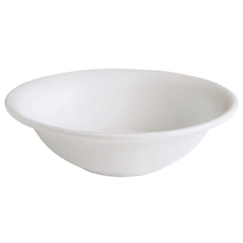 The GET Enterprises PA1101703724 Grapefruit Bowl 10 Oz. 6-1/2" Dia. is a meticulously crafted piece designed to meet the diverse needs of the food service industry. This round bowl, with a capacity of 10 ounces and a 6-1/2 inch diameter, makes it an ideal choice for serving grapefruit and similar dishes. The rolled edge adds an element of elegance while enhancing durability and resistance to chips and scratches, ensuring a long-lasting product life in busy environments. Made from high-quality porcelain, the bowl boasts a bright white finish from the Corona, Actualite collection, providing a sophisticated and clean presentation. This bowl is microwave, dishwasher, and oven safe, able to withstand temperatures up to 380°F, making it versatile for various culinary applications. Its practicality is further emphasized by its status as a stocked item, available in packs of two dozen per case, ensuring consistent supply for high-demand settings. The GET Enterprises PA1101703724 Grapefruit Bowl is an excellent choice for restaurants, hotels, and catering services seeking durable, stylish, and functional tableware that seamlessly integrates into any dining aesthetic.