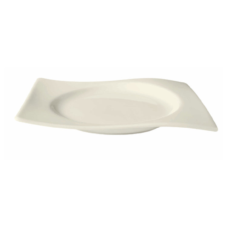 The GET Enterprises PA1101809512 Plate, measuring 10-1/4" x 8-3/4", is a rectangular porcelain dish designed for versatility in various dining settings. Featuring a rolled edge and a distinctive wave design, this plate combines aesthetic appeal with durability. Its bright white color enhances presentation, making it suitable for both formal and casual occasions. The plate's construction ensures it is scratch and chip resistant, maintaining a pristine appearance even in high-traffic environments. It is microwave safe and can withstand oven temperatures up to 380°F, providing flexibility for different culinary needs. Additionally, the plate is dishwasher safe, simplifying cleanup in busy kitchens. Manufactured by GET Enterprises, a known name in tableware, this plate is part of the Corona Actualite collection and comes packed by the dozen, making it an efficient choice for establishments like restaurants, hotels, and catering services. Its robust design and practical size make it an ideal option for serving a variety of dishes, from appetizers to main courses. This plate is a stocked item, ensuring consistent availability for businesses requiring reliable and high-quality tableware solutions.