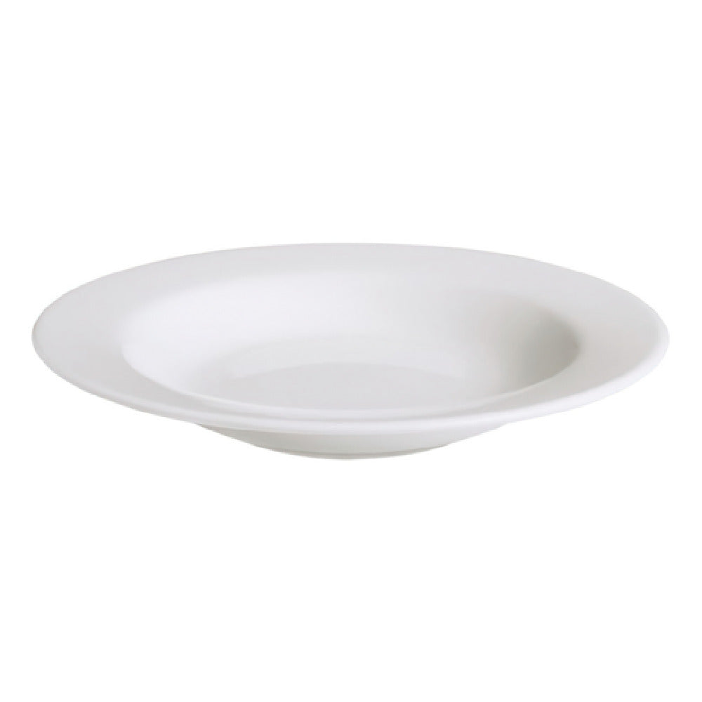 The GET Enterprises PA1101823612 Soup Bowl is a versatile and durable dining solution with a substantial capacity of 33 ounces. With dimensions of 11-1/4 inches in diameter and 2 inches in height, this round soup bowl is designed with a depth of 1-1/2 inches, lending itself well to both individual servings and larger portions. It boasts a rolled edge that not only enhances durability but also provides a classic aesthetic appeal. Crafted from porcelain, this bowl is part of the Corona Actualite line and features a bright white finish, making it a sleek and contemporary choice for any table setting. Its construction is scratch and chip resistant, ensuring longevity in both commercial and residential environments. The bowl is engineered to be microwave, dishwasher, and oven safe up to 380°F, offering convenience and versatility in meal preparation and cleanup. Packed by the dozen, this soup bowl is an excellent choice for restaurants, catering services, and hospitality businesses seeking economical yet high-quality dinnerware that withstands the rigors of daily use while maintaining an elegant presentation.