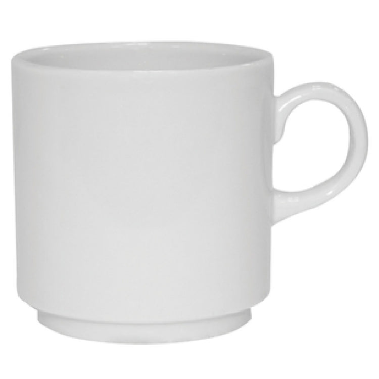 The GET Enterprises PA1101906324 Mug is a compact and practical solution for various foodservice environments, offering a capacity of 9.1 ounces and measuring 4-1/4 inches in height. This mug is designed with a convenient handle and a rolled edge, which enhances its durability and ease of use. Its stackable feature makes it an excellent choice for establishments where space optimization is critical. Crafted from high-quality porcelain, the mug is both scratch and chip resistant, ensuring longevity even with frequent use. It is suitable for use in microwave, dishwasher, and oven environments, withstanding temperatures up to 380°F. The bright white color of the mug, part of the Corona Actualite collection, provides a classic and clean aesthetic suitable for any dining setting. This mug is a stocked item and is packaged by 2 dozen per case, making it an efficient option for businesses needing to maintain a consistent inventory. Its robustness and versatile use make it ideal for cafes, restaurants, and catering services that demand reliable and functional drinkware. This product underscores GET Enterprises' commitment to quality and practicality in foodservice solutions.