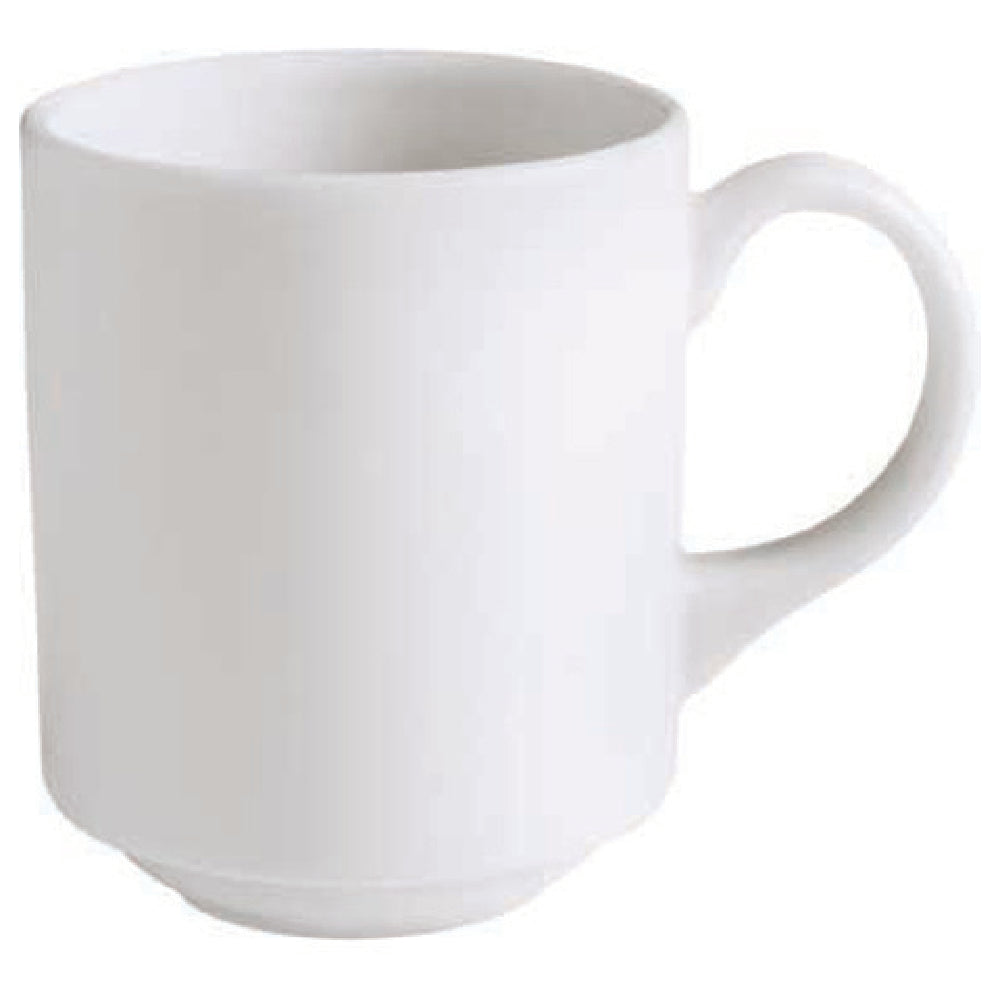 The GET Enterprises PA1101906424 Mug 11.5 Oz. 4-1/2" is a versatile and durable option for various dining and service environments. This mug features a convenient handle and rolled edge, offering both comfort and ease of use. With a capacity of 11.5 ounces and a height of 4-1/2 inches, it is designed to accommodate a generous serving size, making it ideal for coffee shops, restaurants, and catering services. The stackable design aids in efficient storage, maximizing space in busy kitchens. Constructed from premium porcelain, this mug is built to withstand the rigors of daily use, boasting scratch and chip resistance. It is also microwave, dishwasher, and oven safe up to 380°F, providing flexibility and convenience in food service operations. The bright white Corona Actualite finish adds a touch of elegance and complements any table setting, enhancing the dining experience. Stocked in cases of two dozen, the GET Enterprises PA1101906424 Mug is a practical and appealing choice for establishments aiming to balance functionality with aesthetic appeal. This mug's durability, combined with its stylish and practical design, makes it a valuable asset in any hospitality or food service setting.