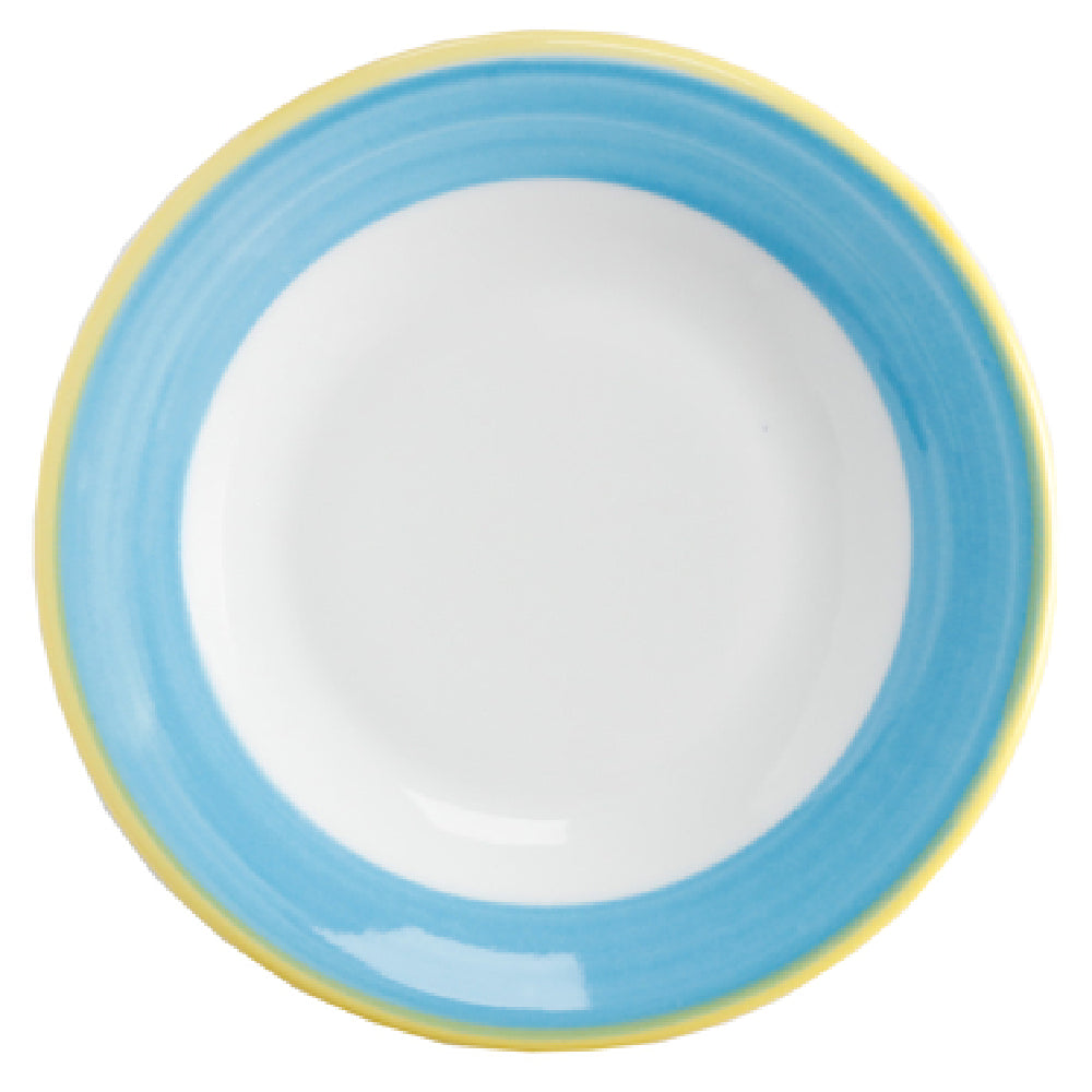 The GET Enterprises PA1601901424 Plate 6-1/2" Dia. Rolled Edge is a well-crafted porcelain plate designed to meet the rigorous demands of various segment markets, including hospitality, catering, and home dining environments. With a diameter of 6-1/2 inches, this plate features a rolled edge that not only enhances its aesthetic appeal but also adds durability. The plate's scratch and chip-resistant properties ensure longevity, making it a reliable choice for high-traffic settings. It is engineered to be microwave, dishwasher, and oven safe up to 380°F, providing versatility and convenience in food preparation and serving. The plate's yellow edge adds a touch of vibrancy, complementing diverse table settings, especially within the Corona and Calypso design lines. As a stocked item, it is available for bulk purchases, packaged by 2 dozen per case, catering effectively to businesses requiring large quantities. The GET Enterprises PA1601901424 Plate stands out for its combination of durability, safety, and design, making it a valuable addition to any kitchen looking to enhance its service with quality porcelain products.