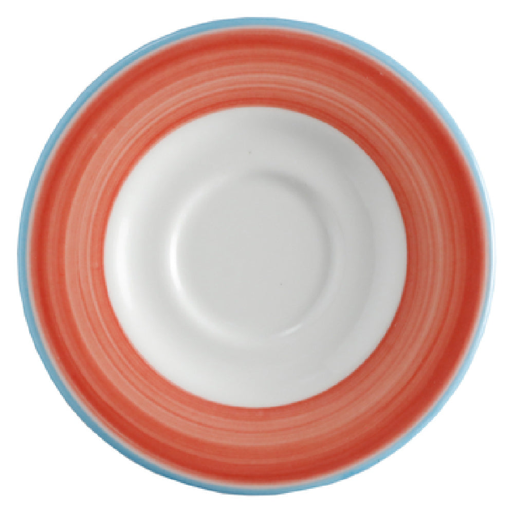The GET Enterprises PA1602900124 Coffee/Espresso Saucer 5" Dia. Round is a meticulously crafted piece designed to enhance any coffee-serving experience. With a 5-inch diameter, this saucer is perfectly sized for espresso and coffee cups, making it a versatile addition to any café or restaurant setting. Constructed from porcelain, it boasts a scratch and chip-resistant surface, ensuring durability and longevity in high-traffic environments. This saucer features a distinctive blue edge, adding a touch of elegance and sophistication to its design. Technically advanced, it is microwave, dishwasher, and oven safe up to 380°F, providing convenience and flexibility in various service settings. The saucer is available in attractive finishes such as Corona, Calypso, and Coral, offering aesthetic versatility. As a made-to-order item, it requires a lead time of 12 weeks with a minimum order quantity of 42 dozen, which is packed by 2 dozen per case, catering to bulk purchasing needs. This product is ideal for businesses that value both style and functionality, providing an exceptional dining experience across different segments of the hospitality industry.