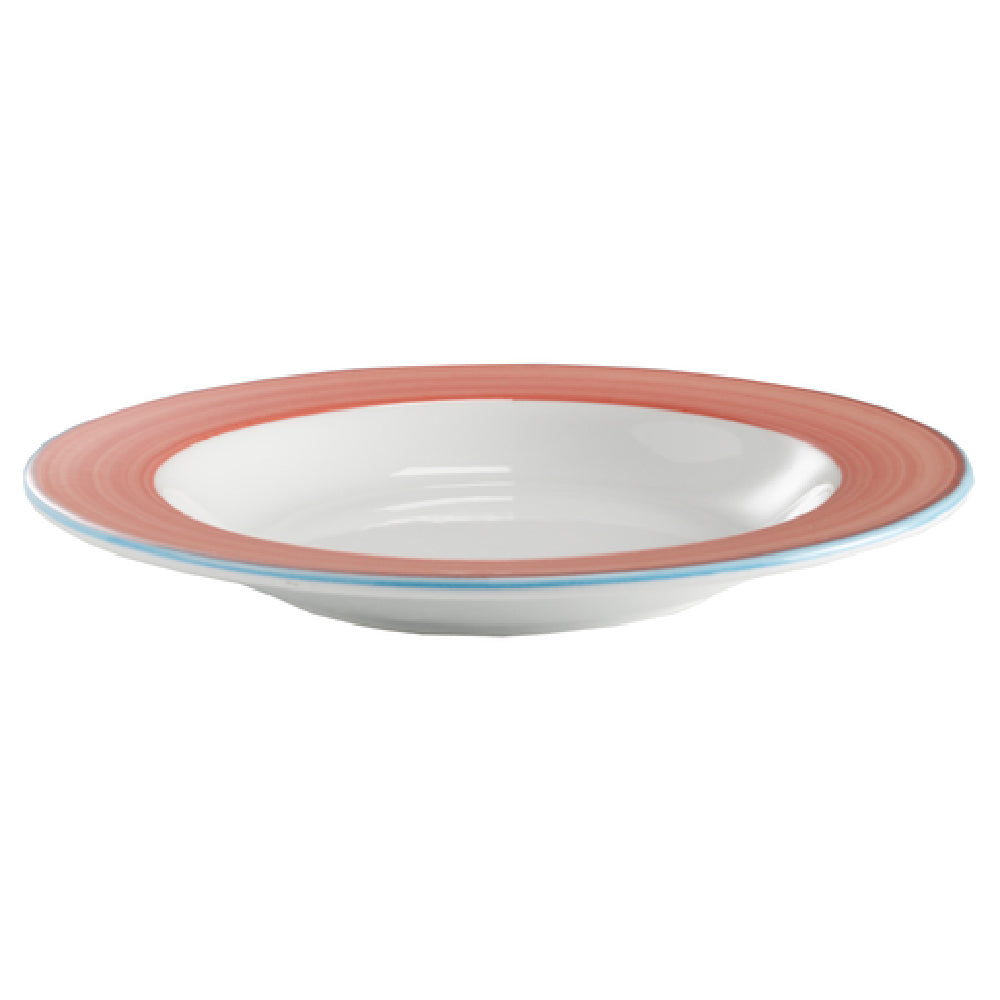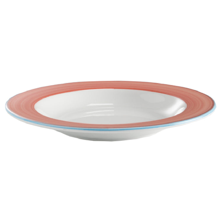 The GET Enterprises PA1602903912 Pasta Bowl is a versatile and durable dinnerware option, with an 18-4/5 oz. capacity and a diameter of 12 inches, making it perfect for serving generous portions of pasta. This round, rimmed bowl is designed to be scratch and chip resistant, ensuring long-lasting use in both commercial and home settings. Constructed from high-quality porcelain, it features a stylish blue edge with color options including Corona, Calypso, and Coral. The bowl's practicality is further enhanced by its microwave, dishwasher, and oven safety up to 380°F, offering exceptional convenience for various culinary applications. As a stocked item, it is readily available and packed by the dozen, making it suitable for restaurants, catering businesses, and large households. The GET Enterprises PA1602903912 Pasta Bowl's robust design and aesthetic appeal make it a valuable addition to any tableware collection, combining functionality with elegance.