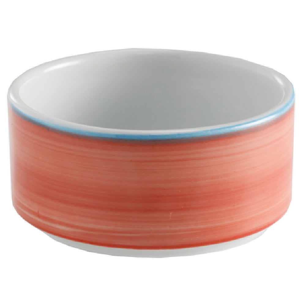 The GET Enterprises PA1602905124 Soup Cup is a meticulously designed dining essential with an 11 oz. capacity and a 4-inch diameter, making it a versatile choice for various culinary applications. This round soup cup lacks a handle, enhancing its sleek aesthetic and stackability, which is particularly beneficial for efficient storage in both commercial and home kitchens. Engineered for durability, this soup cup is scratch and chip resistant, promising long-lasting service in high-traffic environments. With its capacity to withstand temperatures up to 380°F, the cup is safe for use in the microwave, dishwasher, and oven, providing a seamless transition between food preparation and serving. Crafted from high-quality porcelain, it features an elegant blue edge, adding a touch of sophistication to any table setting. The color options of Corona, Calypso, and Coral allow for a personalized dining presentation, catering to diverse stylistic preferences. Packaged by two dozen per case, this soup cup is a practical choice for restaurant owners, caterers, and hospitality businesses seeking dependable and aesthetically pleasing dinnerware. Its thoughtful design not only meets the demands of the food service industry but also offers a refined dining experience for guests, making it a valuable addition to any dinnerware collection.
