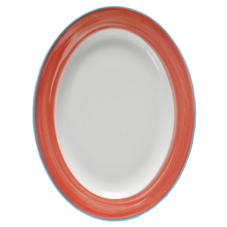 The GET Enterprises PA1602907612 Platter is a versatile 10-inch by 7-1/2-inch oval dish, expertly crafted to meet the demands of both casual and professional dining settings. Featuring a rimmed, rolled edge, this platter is designed to resist scratches and chips, ensuring durability for long-term use. Its porcelain construction, highlighted by a distinctive blue edge, adds a touch of elegance while maintaining practicality. The platter is microwave, dishwasher, and oven safe, withstanding temperatures up to 380°F, making it a flexible choice for various culinary applications. Available in the appealing Corona, Calypso, and Coral designs, it caters to diverse aesthetic preferences. As a stocked item, it is conveniently packed by the dozen, facilitating easy procurement for restaurants, caterers, and hospitality businesses. This platter's robust construction and stylish design make it an ideal choice for a wide range of market segments, providing both functionality and visual appeal in any dining environment.