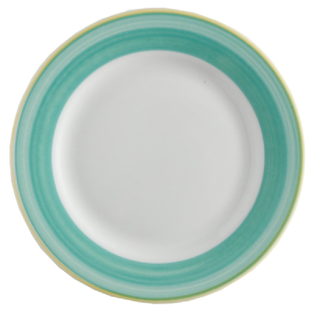 The GET Enterprises PA1603901424 Plate 6-1/2" Dia. Round is a meticulously engineered piece of tableware, offering a dynamic solution for both casual and formal dining settings. Measuring 6-1/2 inches in diameter, this round plate features a sophisticated rolled edge that enhances its durability, making it resistant to scratches and chips. Crafted from high-quality porcelain, it boasts a design that is both aesthetically pleasing and highly functional. The plate is microwave, dishwasher, and oven safe, withstanding temperatures up to 380°F. This makes it an ideal choice for fast-paced environments such as restaurants, cafes, and catering services where versatility and durability are paramount. The yellow edge detail adds a touch of elegance, making it suitable for a variety of themes and presentations. Available in the Corona, Calypso, Green pattern, it is a stocked item, ensuring ready availability. Packed by 2 dozen per case, the GET Enterprises PA1603901424 Plate is optimized for bulk purchasing, catering to the needs of large-scale operations. This plate's blend of durability, functionality, and style makes it a valuable asset for food service providers seeking to enhance their dining experience with reliable and attractive dinnerware.