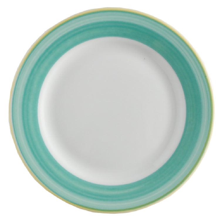 The GET Enterprises PA1603902024 Plate 8" Dia. Round is a meticulously designed dining solution tailored for varied industry needs, from hospitality to catering services. Featuring an 8-inch diameter, this round plate embodies durability and aesthetic appeal with its rolled edge construction. Noteworthy for its scratch and chip-resistant properties, this plate ensures longevity, even under frequent use. Crafted from porcelain, it provides both elegance and robustness, enhanced by its yellow edge, which adds a touch of vibrancy to table settings. The Corona and Calypso Green color options offer versatility in design choice, aligning with diverse thematic decors. This plate is microwave, dishwasher, and oven safe, capable of withstanding temperatures up to 380°F, making it a practical choice for various culinary applications. As a stocked item, it promises regular availability and is conveniently packed by 2 dozen per case, optimizing storage and transportation efficiency. This plate seamlessly integrates functionality with style, catering to professional environments that demand both quality and visual appeal. Its resilience and adaptability make it an invaluable component in settings ranging from casual dining to more sophisticated gastronomic displays, meeting the practical and aesthetic requirements of the modern food service industry.
