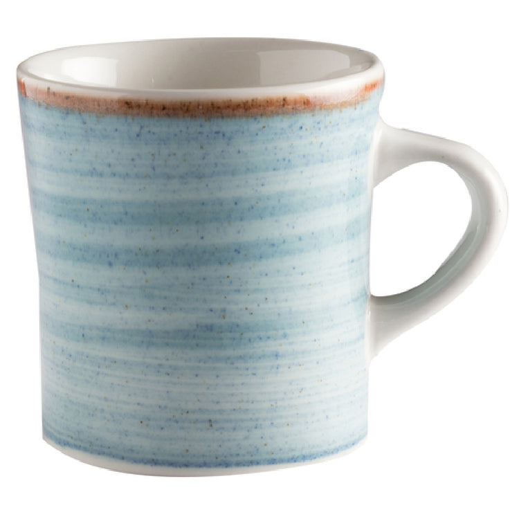 The GET Enterprises PP1604726424 Mug - 11 Oz. 5" is a versatile and durable choice for various segments within the hospitality and foodservice industries. Crafted from high-quality porcelain, this mug embodies both elegance and resilience. With a capacity of 11 ounces, it is perfectly suited for serving a range of beverages, from coffee to tea. Its 5-inch height, coupled with a convenient handle, enhances user comfort and grip, making it an ideal option for both individual and commercial use. The rolled edge design not only adds a touch of sophistication but also contributes to the mug’s scratch and chip-resistant properties, ensuring longevity even in high-traffic environments. This mug is microwave, dishwasher, and oven safe up to 380°F, making it highly adaptable to various serving and preparation needs. The 'Artisan, blue' finish adds a unique visual appeal, while the 'Corona' style offers a classic aesthetic that complements diverse dining settings. Stocked as a standard item, this mug is packed by 2 dozen per case, facilitating efficient inventory management for large-scale operations. The GET Enterprises PP1604726424 Mug is a practical and reliable choice, offering exceptional value through its combination of style, durability, and functionality.