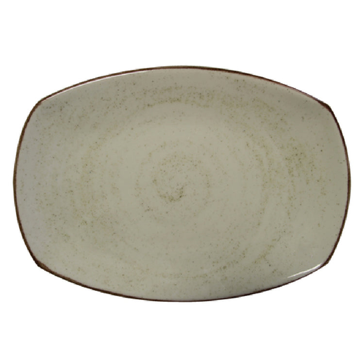 The GET Enterprises PP1605727906 Platter - 13-7/9" X 9-2/3" Rectangular is an expertly designed serving solution, ideal for various dining environments seeking durability and style. Measuring 13-7/9 inches by 9-2/3 inches, this platter provides ample space for presenting a variety of culinary delights. Its rectangular shape with a rolled edge design adds a touch of elegance while ensuring ease of handling. Crafted from high-quality porcelain, it boasts a scratch and chip-resistant surface, making it a long-lasting addition to any restaurant or catering operation. The platter is microwave, dishwasher, and oven safe, withstanding temperatures up to 380°F, thus offering versatile usage across different culinary applications. Available in a tasteful beige color under the Corona and Artisan collections, it complements diverse table settings, enhancing the presentation of dishes. This stocked item, packed by 6 each per case, presents a practical choice for establishments aiming for both functionality and aesthetic appeal in their tableware. Tailored to meet the needs of various market segments, from casual eateries to upscale dining venues, the GET Enterprises PP1605727906 Platter stands out for its robustness and versatile use in the foodservice industry.