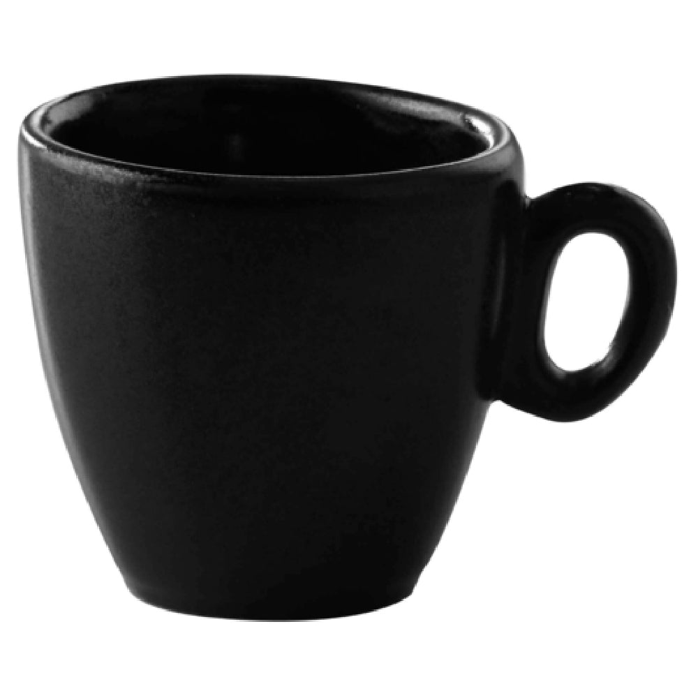 The GET Enterprises PP1941814124 Espresso Cup 1-7/8 Oz. 3" Dia. is a meticulously designed piece, ideal for hospitality settings that demand both style and resilience. With a compact capacity of 1-7/8 ounces and a diameter of 3 inches, this espresso cup suits refined coffee presentations perfectly. Its thoughtful design includes a handle and rolled edge, enhancing both comfort and aesthetic appeal. Crafted from durable porcelain, this cup is finished with a black reactive glaze, adding a touch of elegance to its appearance. Notably, it is scratch and chip resistant, ensuring longevity in high-traffic environments. The cup's versatility is further underscored by its microwave, dishwasher, and oven safety, enduring temperatures up to 380°F. This makes it a practical choice for busy cafes and restaurants where efficiency is paramount. As a made-to-order item, it requires a lead time of 6 to 8 weeks and is available in a minimum order of a case quantity, packed by 2 dozen per case. The GET Enterprises PP1941814124 Espresso Cup is a sophisticated and practical solution for those in the foodservice industry seeking durability without compromising on style.