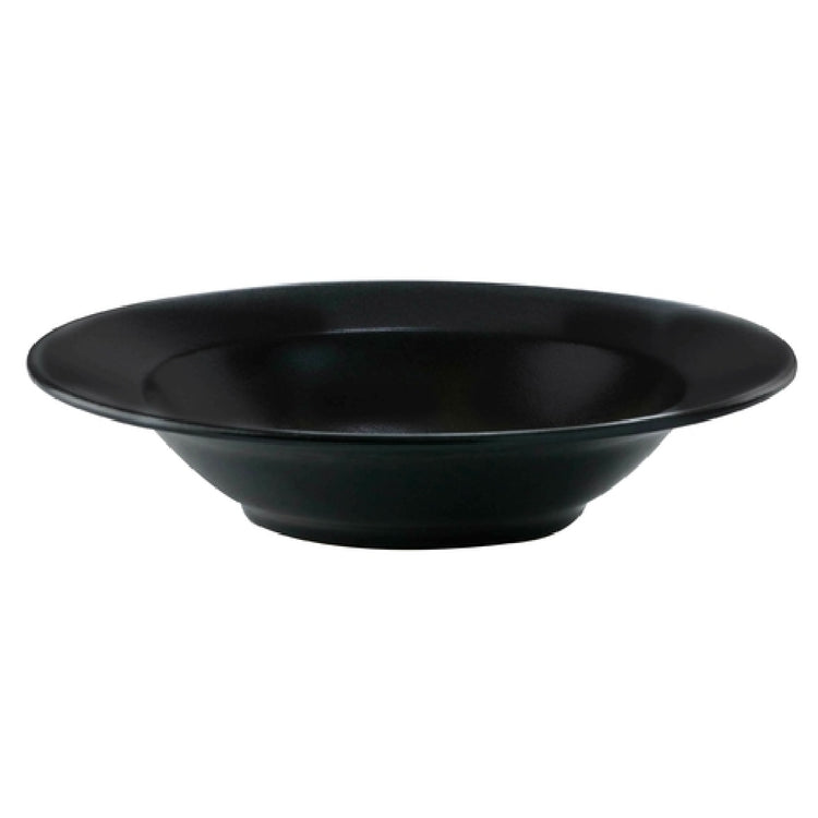 The GET Enterprises PP1941903712 Pasta Bowl is a meticulously crafted piece of dinnerware with a capacity of 18-1/5 oz and a diameter of 9-3/4 inches, making it an ideal choice for both home kitchens and professional dining establishments. Its round design includes a rolled edge and rimmed structure, providing a classic yet functional aesthetic that complements a variety of table settings. Constructed from durable porcelain, this pasta bowl is both scratch and chip-resistant, offering longevity and reliability in high-traffic environments. The bowl is microwave, dishwasher, and oven-safe up to 380°F, enhancing its versatility for various culinary applications. The Corona, Cosmos Pluto black reactive glaze imparts a sophisticated and modern look, making it suitable for any upscale dining experience. This stocked item is packed by the dozen, catering to larger dining services or retail needs. Its unique combination of durability, safety features, and aesthetic design makes the GET Enterprises PP1941903712 Pasta Bowl an excellent choice for restaurants, hotels, and catering services, providing a blend of functionality and elegance that meets diverse market demands within the food service industry.