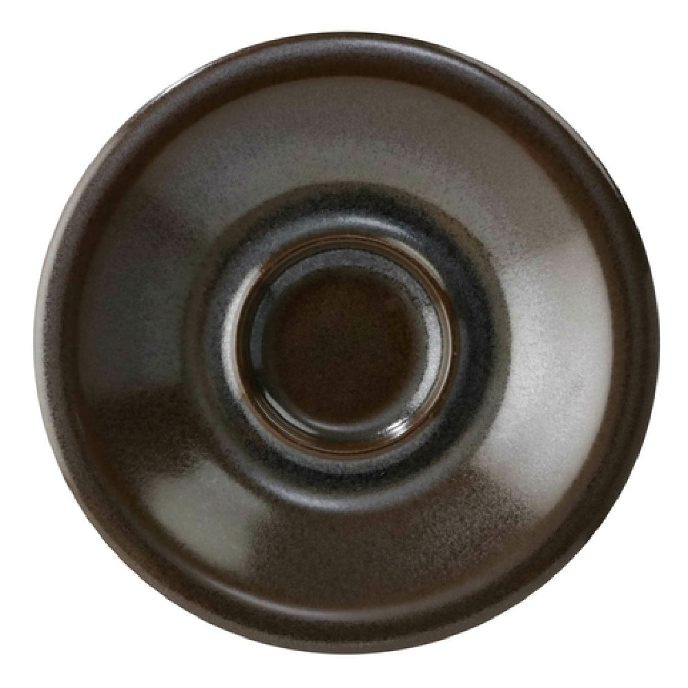 The GET Enterprises PP1942810124 Espresso Saucer 5" Dia. Round is an expertly crafted piece designed for durability and style in the hospitality industry. Measuring 5 inches in diameter, this round espresso saucer features a rolled edge that adds a touch of elegance while providing structural integrity. Its construction from high-quality porcelain ensures it is scratch and chip resistant, making it ideal for high-traffic environments. The saucer is finished with a dark brown reactive glaze, known as Corona, Cosmos Mercury, which adds a sophisticated appearance. Engineered for versatility, this saucer is safe for use in microwaves, dishwashers, and ovens up to 380°F, providing essential functionality in food service settings. As a made-to-order item, it requires a lead time of 6 to 8 weeks and is available in a minimum order of case quantity, packed by 2 dozen per case. This saucer caters to various segments in the foodservice industry, from bustling cafes looking for durability and style, to upscale restaurants needing high-quality, aesthetically pleasing dishware. With its combination of resilience and aesthetic appeal, the GET Enterprises PP1942810124 Espresso Saucer is a valuable addition to any dining establishment's tableware collection.
