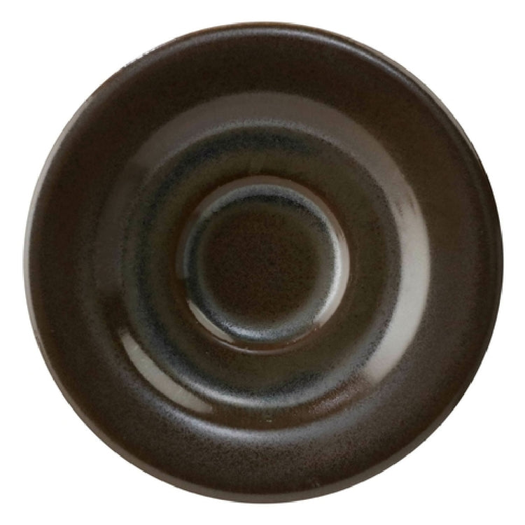 The GET Enterprises PP1942900124 Coffee/Espresso Saucer is a meticulously crafted dishware piece, designed to complement a variety of coffee and espresso settings. With a precise diameter of 5 inches, this round saucer showcases a rolled edge that enhances its aesthetic appeal and functionality. Notably, it is constructed from high-quality porcelain, ensuring it is both scratch and chip resistant. This durability is complemented by its versatility, as the saucer is safe for use in microwaves, dishwashers, and ovens up to temperatures of 380°F. The saucer's distinctive dark brown reactive glaze, part of the Corona Cosmos Mercury collection, adds a touch of elegance to any beverage presentation. This product is ideal for both upscale cafes and casual dining establishments, accommodating different market segments with its unique blend of style and endurance. As a made-to-order item, it requires a lead time of 6 to 8 weeks and is available in case quantities, with each case packed by 2 dozen. This saucer is a sophisticated choice for establishments seeking to enhance their tabletop presentation with reliable performance and distinctive design.