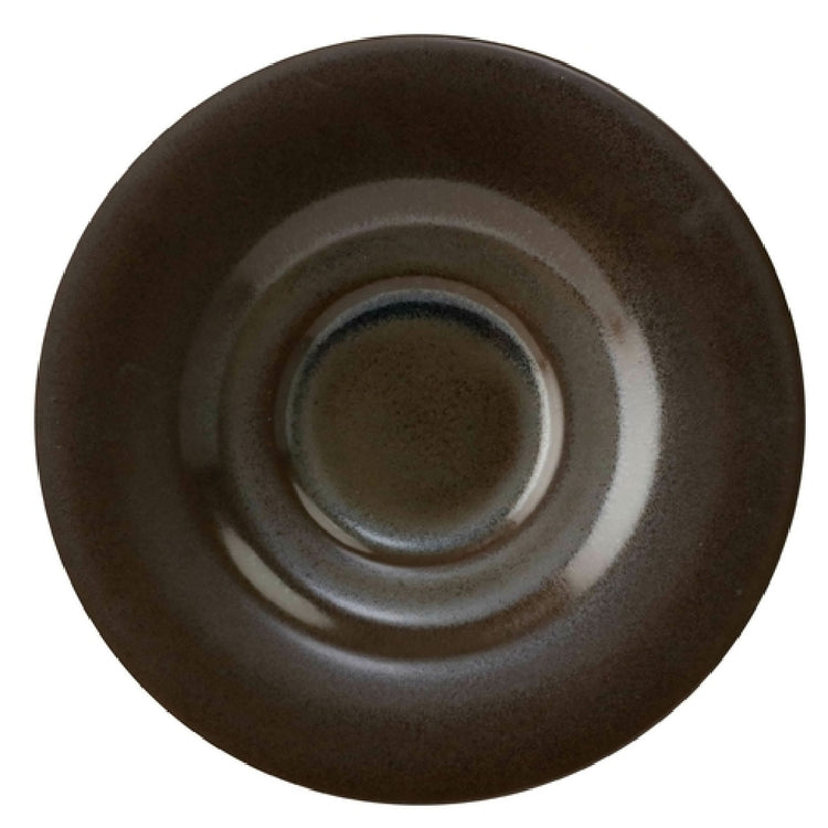 The GET Enterprises PP1942900324 Tea/Bouillon Saucer is meticulously crafted with a 6-1/2 inch diameter and features a rolled edge, emphasizing durability and functionality. This saucer is constructed from porcelain, renowned for its classic elegance and resilience, making it an ideal choice for both casual and formal dining settings. Its scratch and chip-resistant surface enhances longevity, ensuring it maintains its pristine appearance through frequent use. The saucer's compatibility with microwave, dishwasher, and oven use up to 380°F underscores its versatility and convenience in various culinary environments. The dark brown reactive glaze of the Cosmos Mercury design adds a sophisticated touch, appealing to establishments seeking a distinctive aesthetic. As a stocked item, the GET Enterprises PP1942900324 is packaged by 2 dozen per case, catering to the needs of restaurants, cafes, and hospitality venues that require bulk quantities without compromising on quality. This saucer seamlessly combines style and practicality, making it a valuable addition to any foodservice operation seeking reliable and elegant tableware solutions.